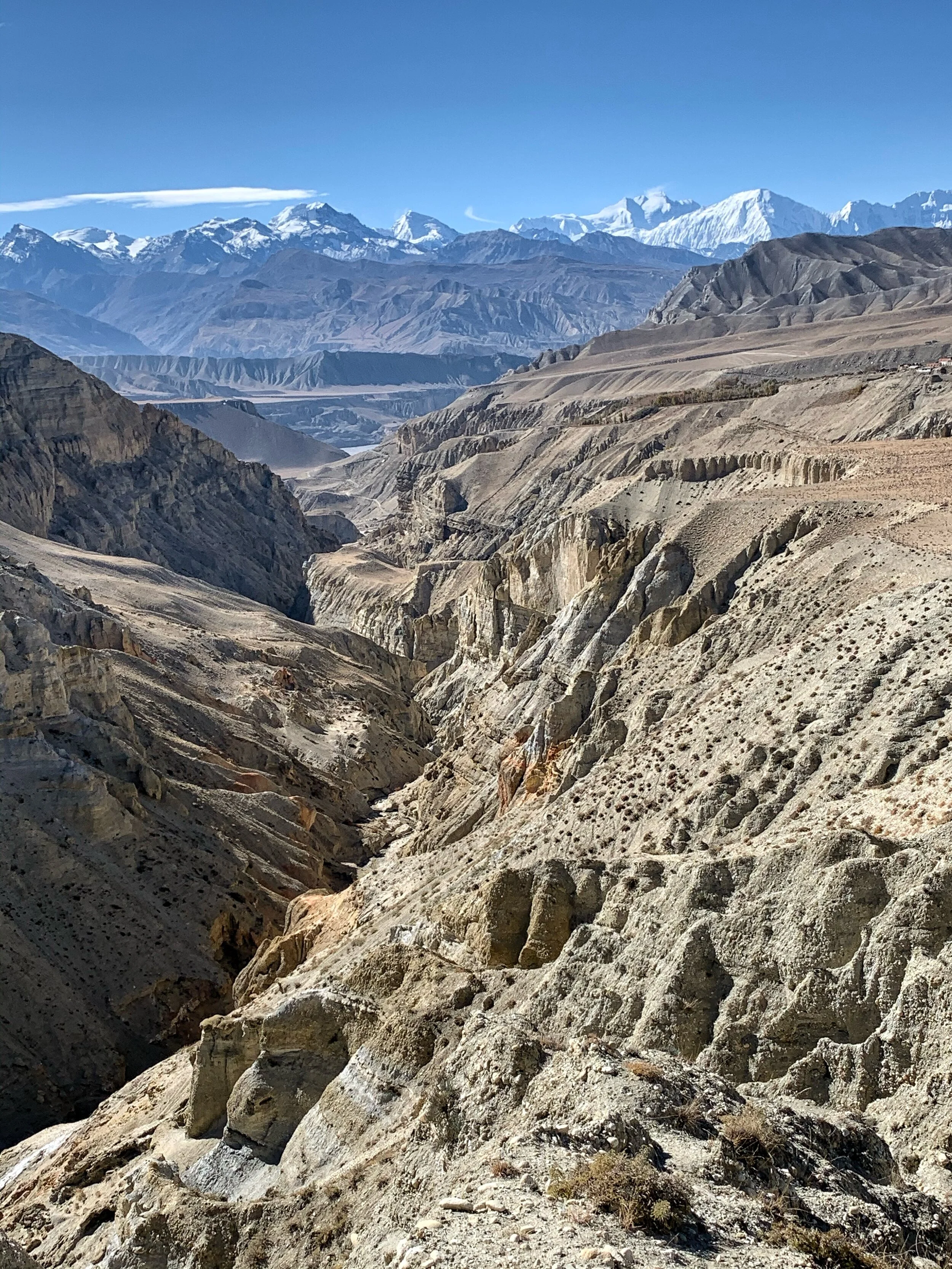 Near Garphu, the Mustang Range dominates the horizon. The peaks are around 6,000m in height. There is some remote trekking in the range.