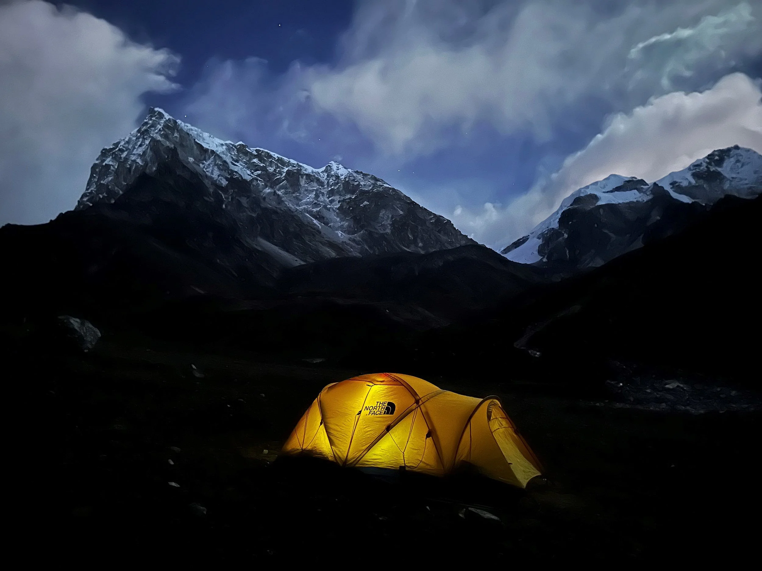 I thought that this option was more exciting than just trekking to Nangpa La and back (although if I had time I would want to go there as well). As consolation, we could see most of the spectacular scenery of the Nangpa Glacier from where we were. We retired to bed early as the sun hid behind the surrounding peaks and moraines around 3pm. It got instantly cold. Since I was tired anyway, my warm sleeping bag seemed very inviting. The night was cold but clear with bright moon. I could see the mountains illuminated in the bright silver light when I stepped outside of the tent in the night.