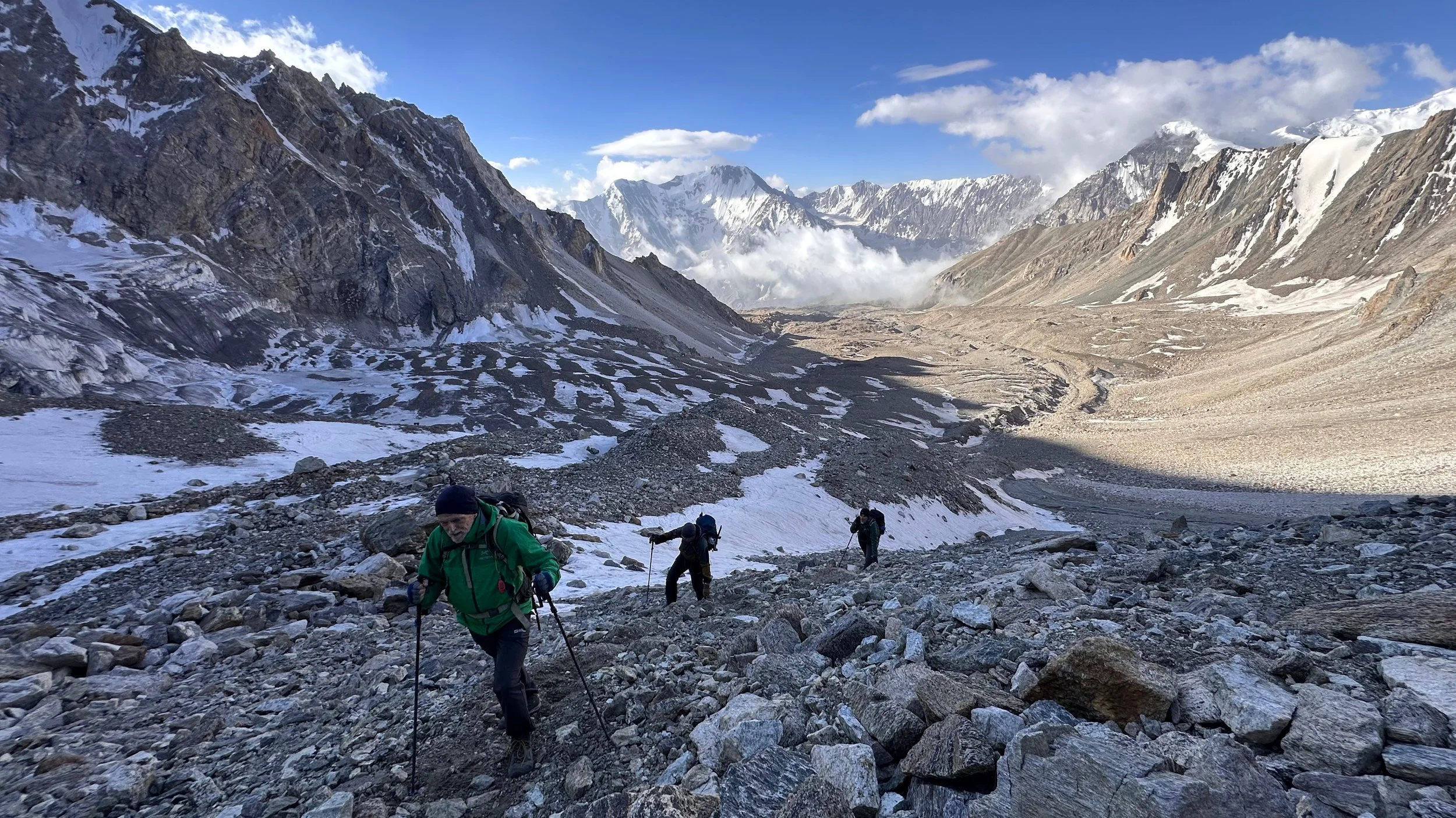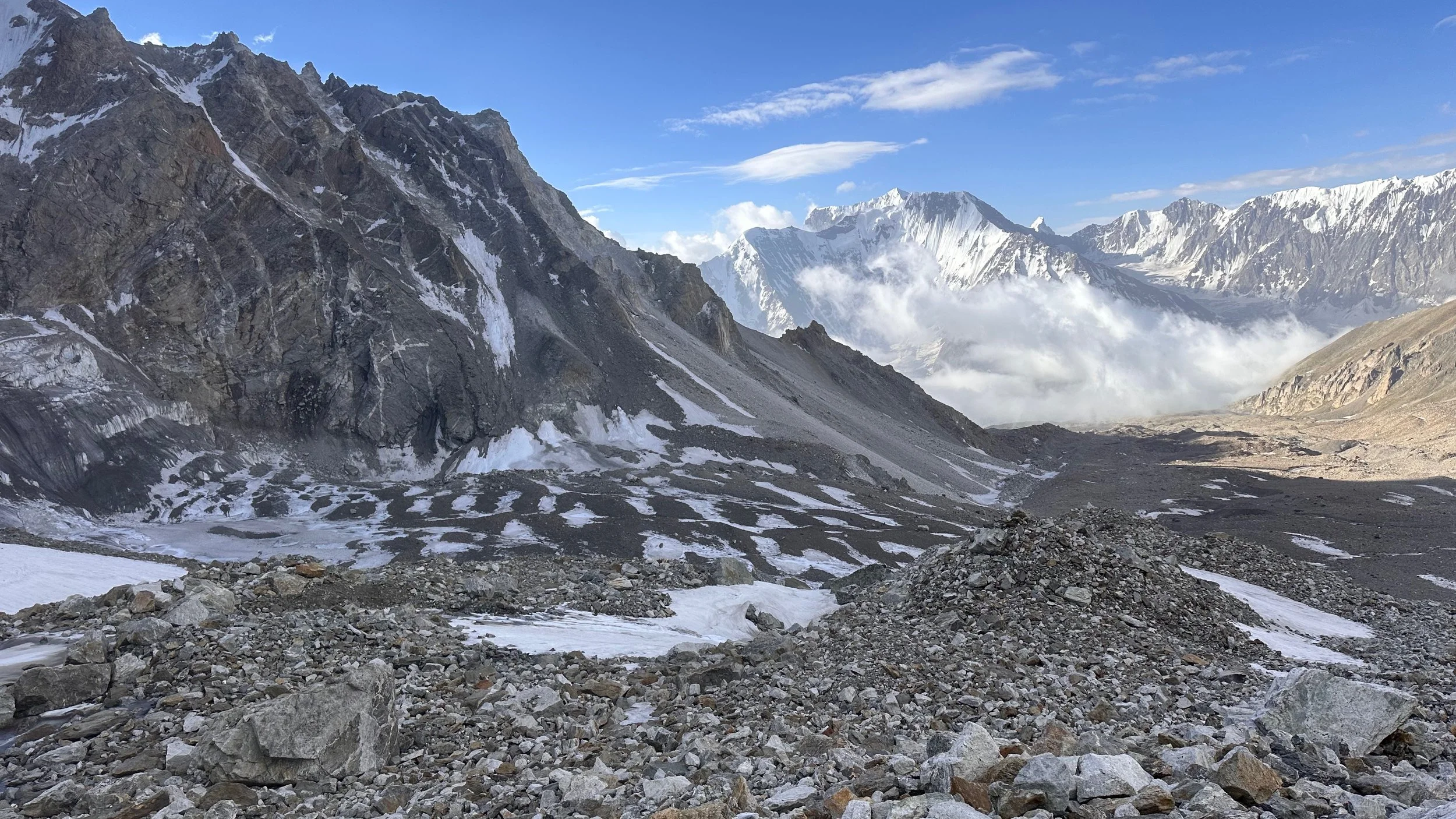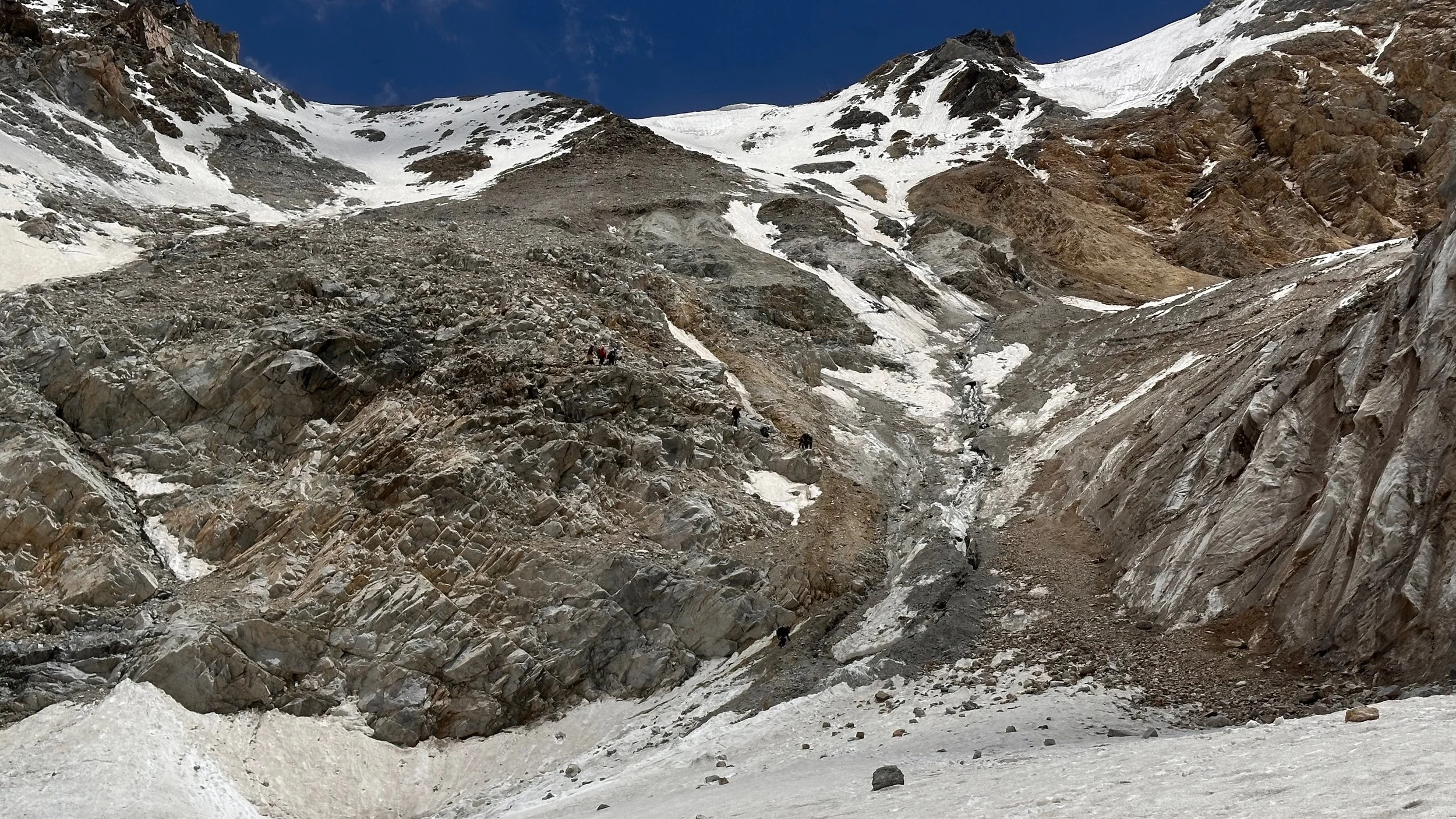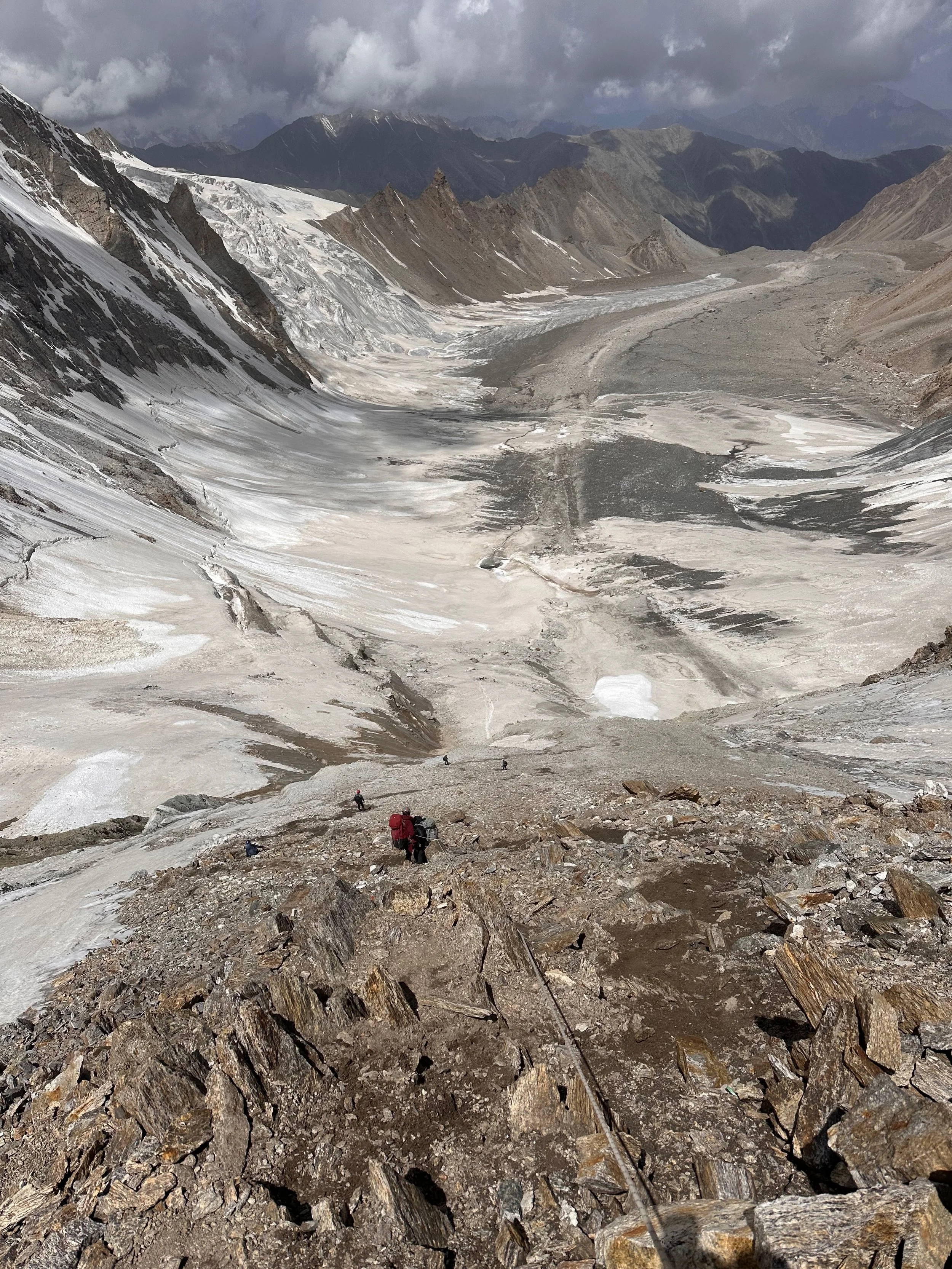 Descending the pass was not very straight forward. The rockfall was the biggest issue, especially at the bottom. The falling rocks were coming at us from all directions.