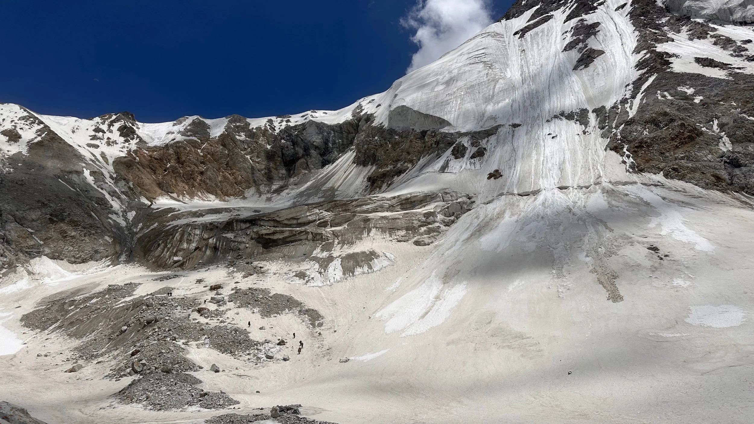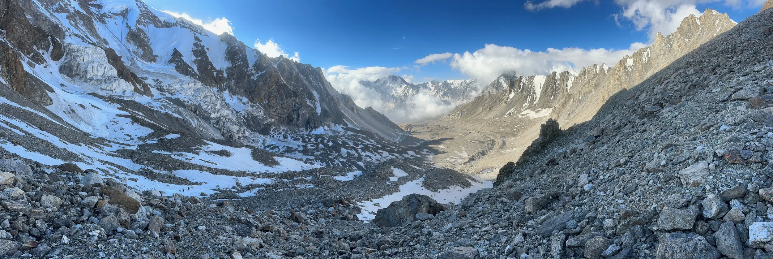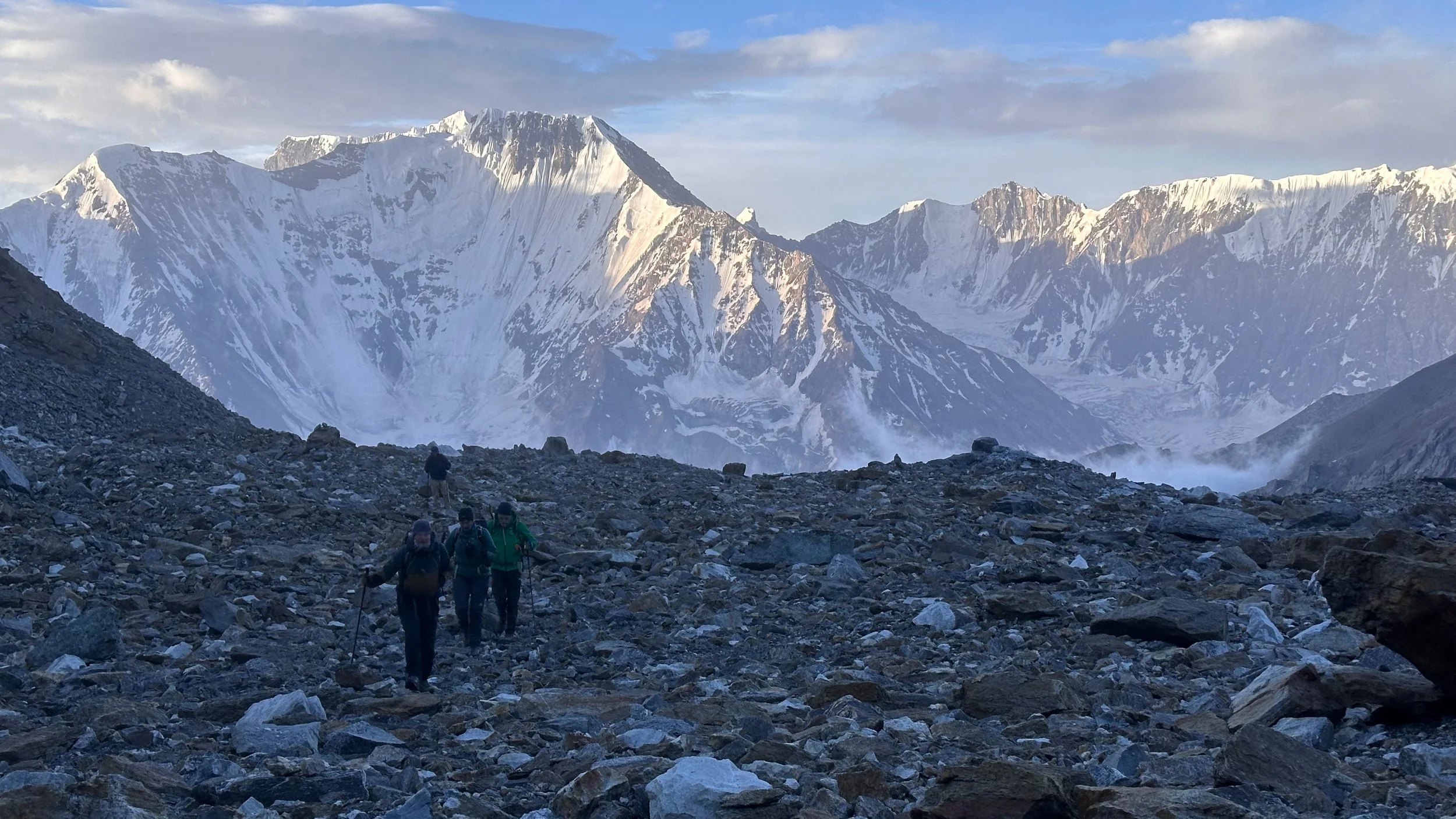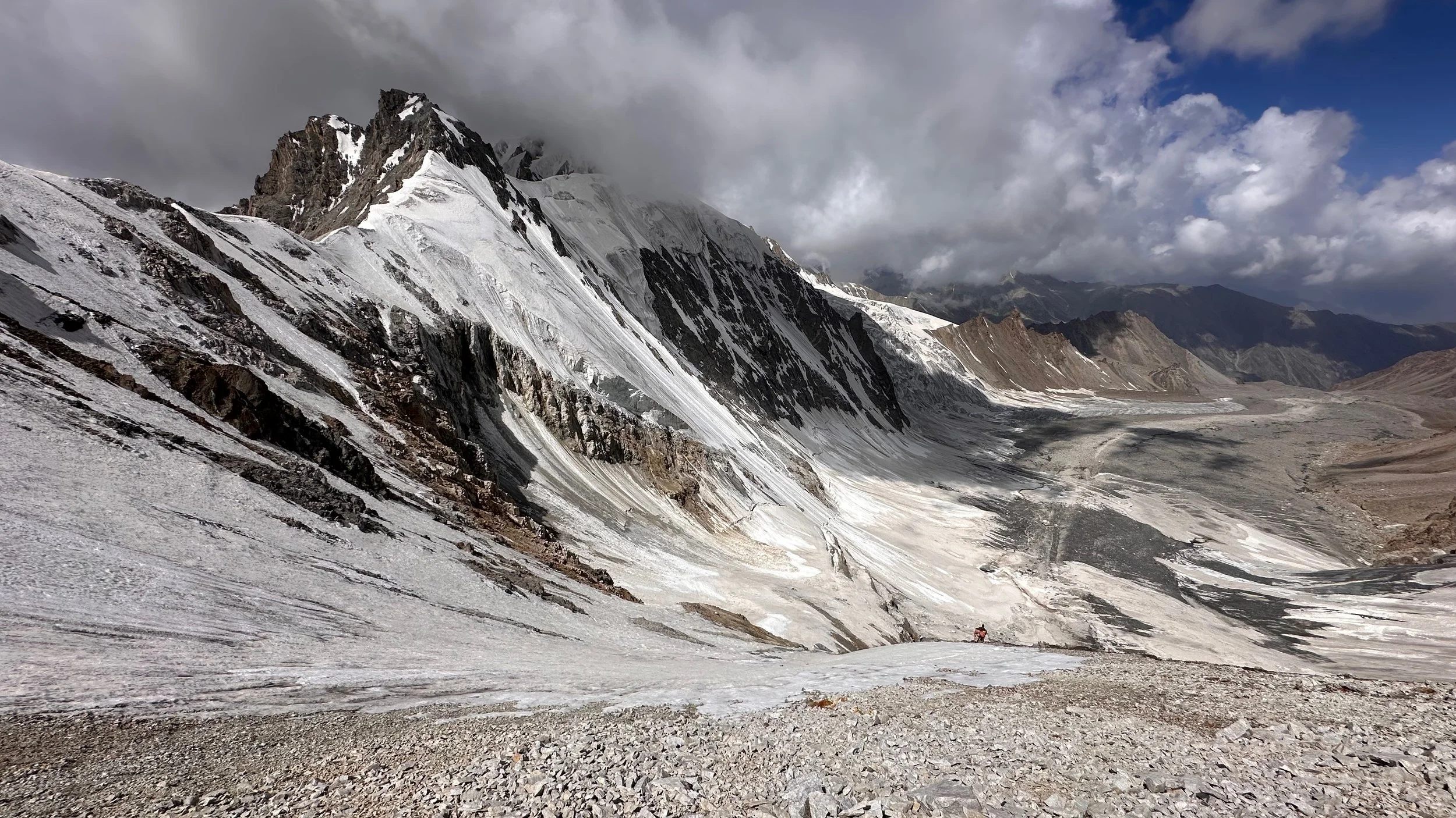 Descending the pass was not very straight forward. The rockfall was the biggest issue, especially at the bottom. The falling rocks were coming at us from all directions.