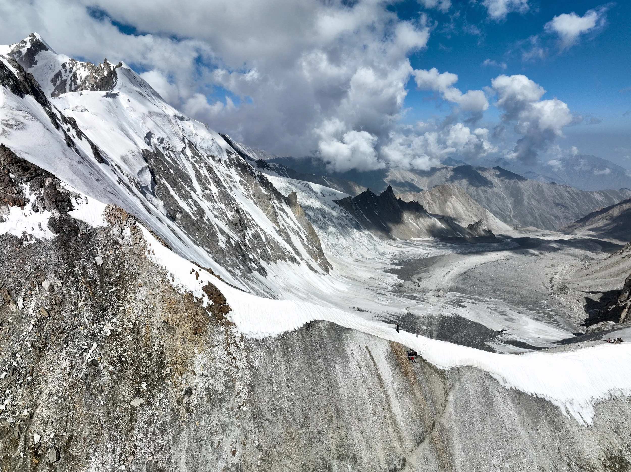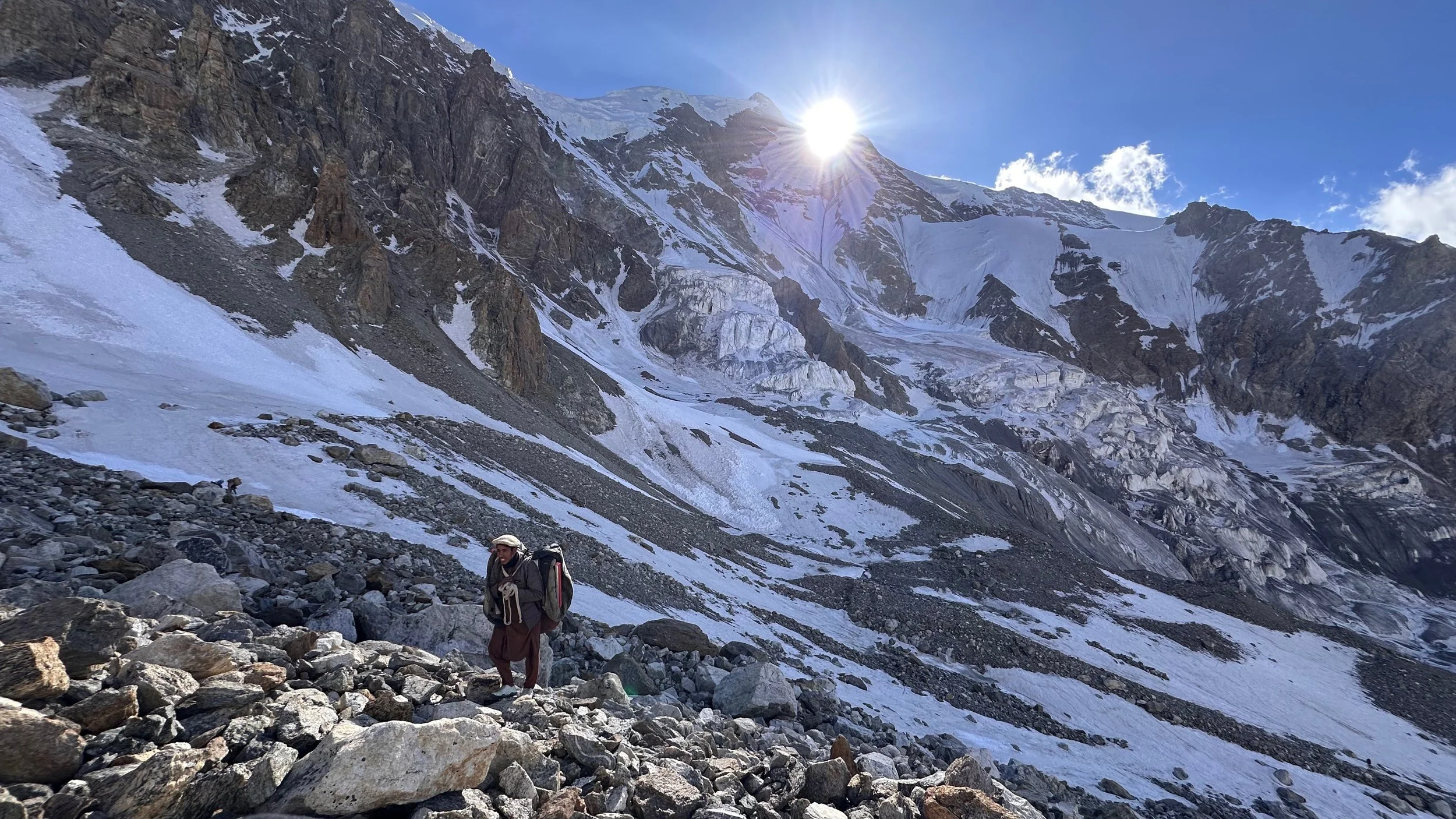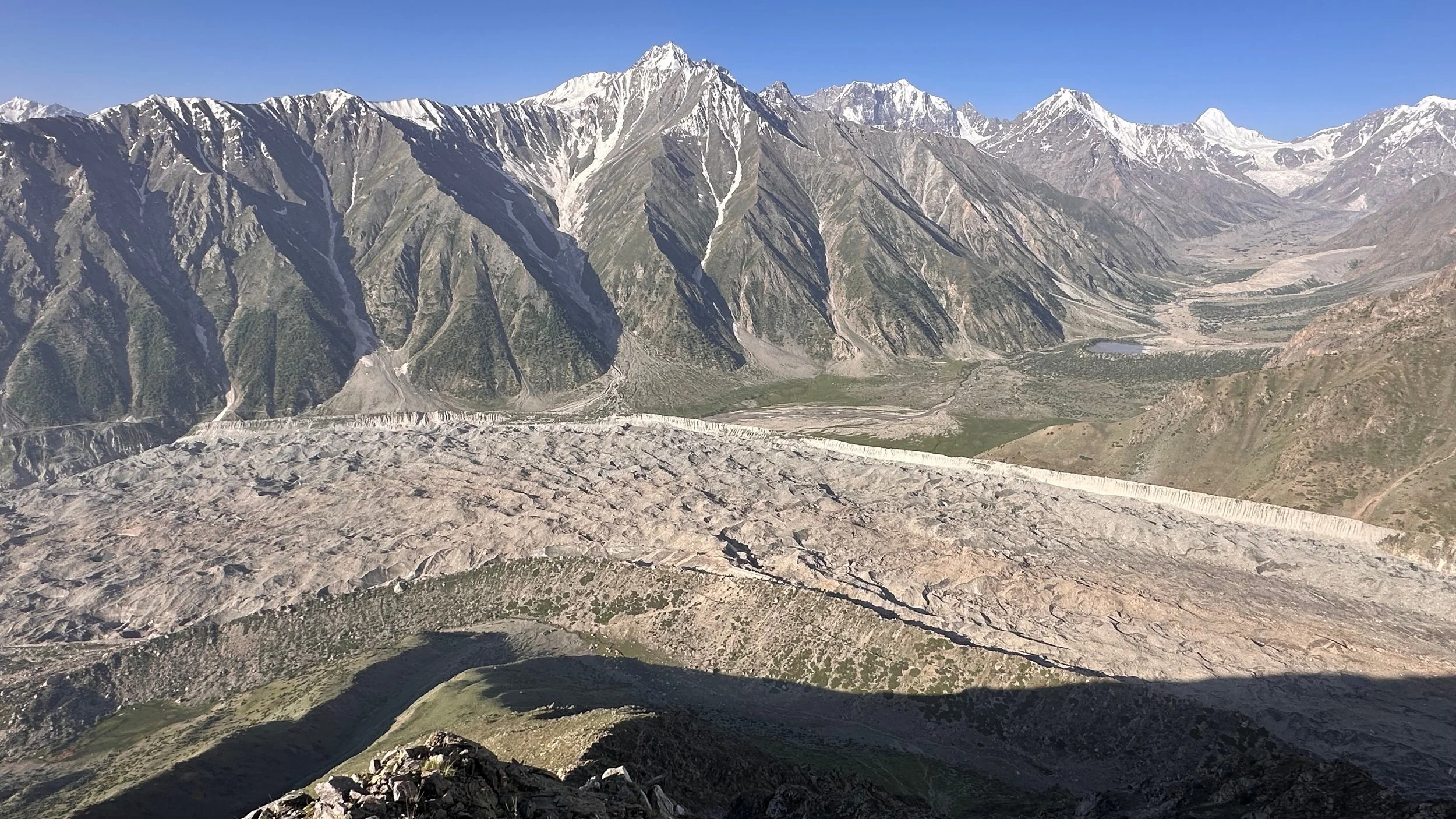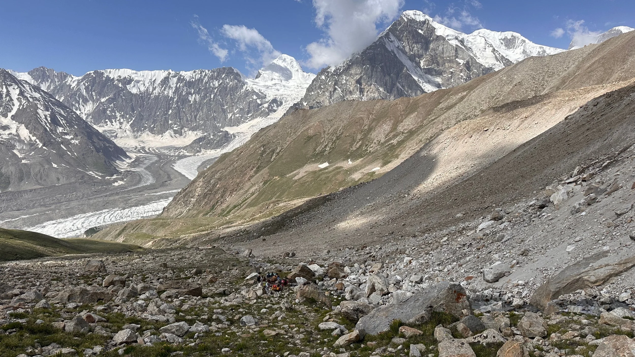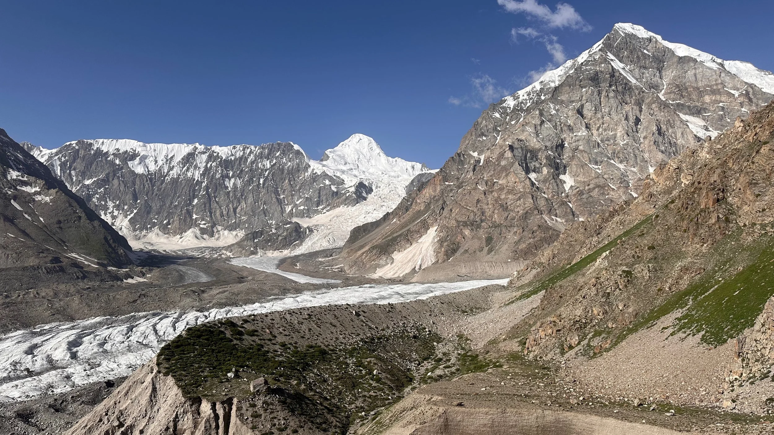 2025 was unusually hot and hiking uphill in the heat was sometimes an intense experience: “The region endured a severe heatwave in June, affecting Northern India and Pakistan. Gilgit-Baltistan recorded extreme temperatures, with Chilas district hitting 48.5°C on July 5, breaking a 28-year record. June’s dry conditions prompted heat warnings in Delhi, Punjab, Rajasthan, Uttar Pradesh, and Haryana. Hospitals in Pakistan’s Punjab province reported an influx of heatstroke cases.” What caused problems lower down, worked in our favour.