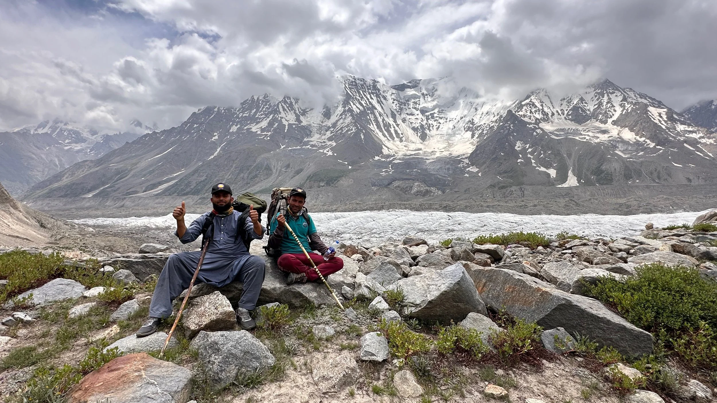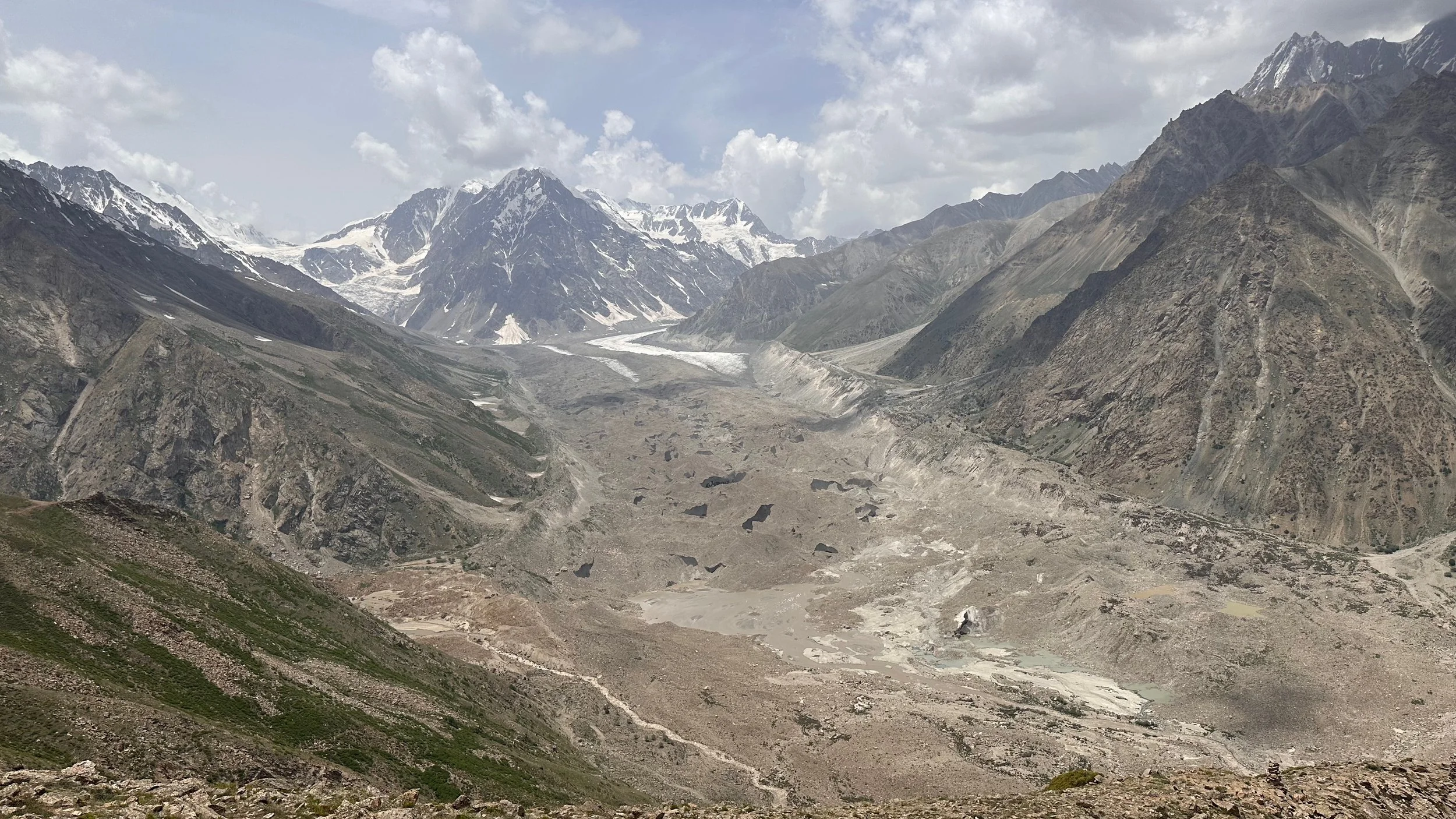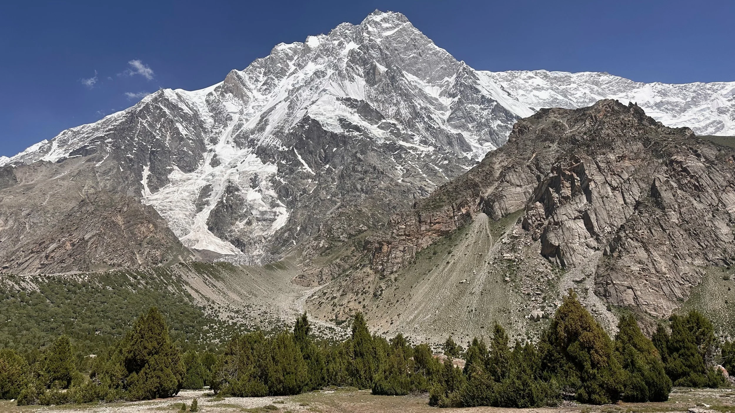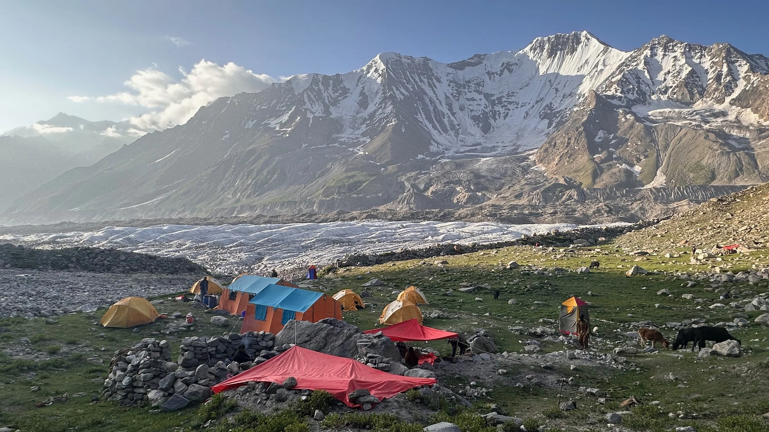 2025 was unusually hot and hiking uphill in the heat was sometimes an intense experience: “The region endured a severe heatwave in June, affecting Northern India and Pakistan. Gilgit-Baltistan recorded extreme temperatures, with Chilas district hitting 48.5°C on July 5, breaking a 28-year record. June’s dry conditions prompted heat warnings in Delhi, Punjab, Rajasthan, Uttar Pradesh, and Haryana. Hospitals in Pakistan’s Punjab province reported an influx of heatstroke cases.” What caused problems lower down, worked in our favour.