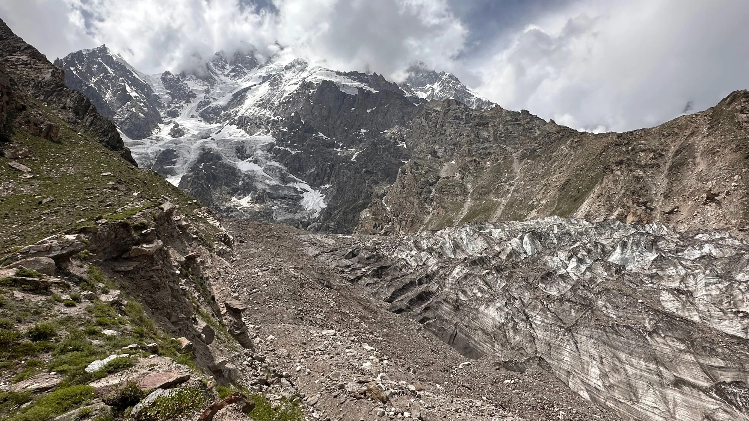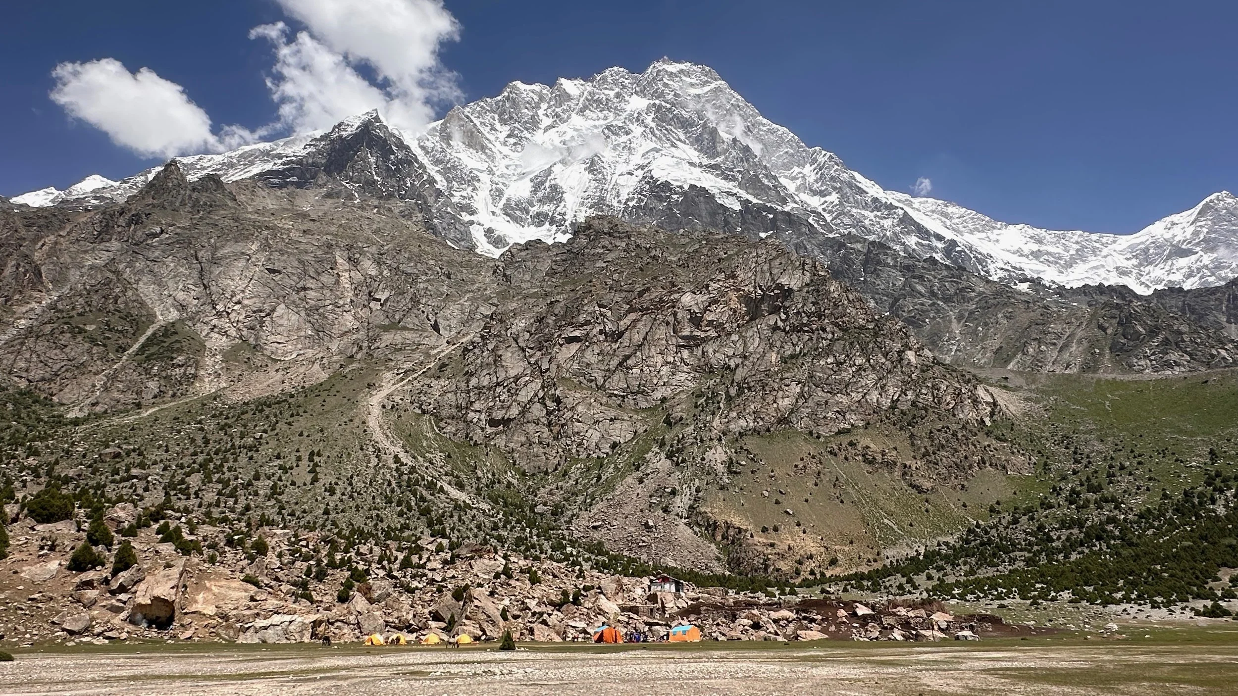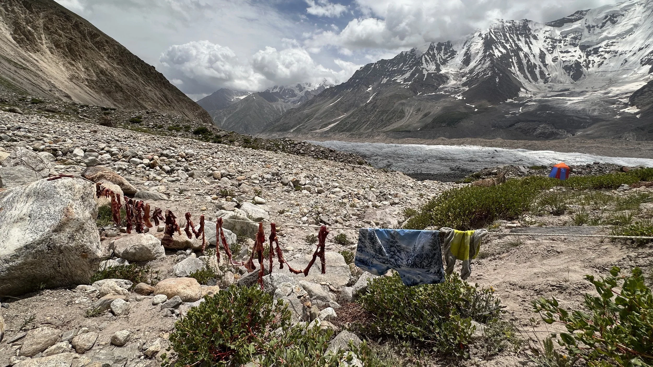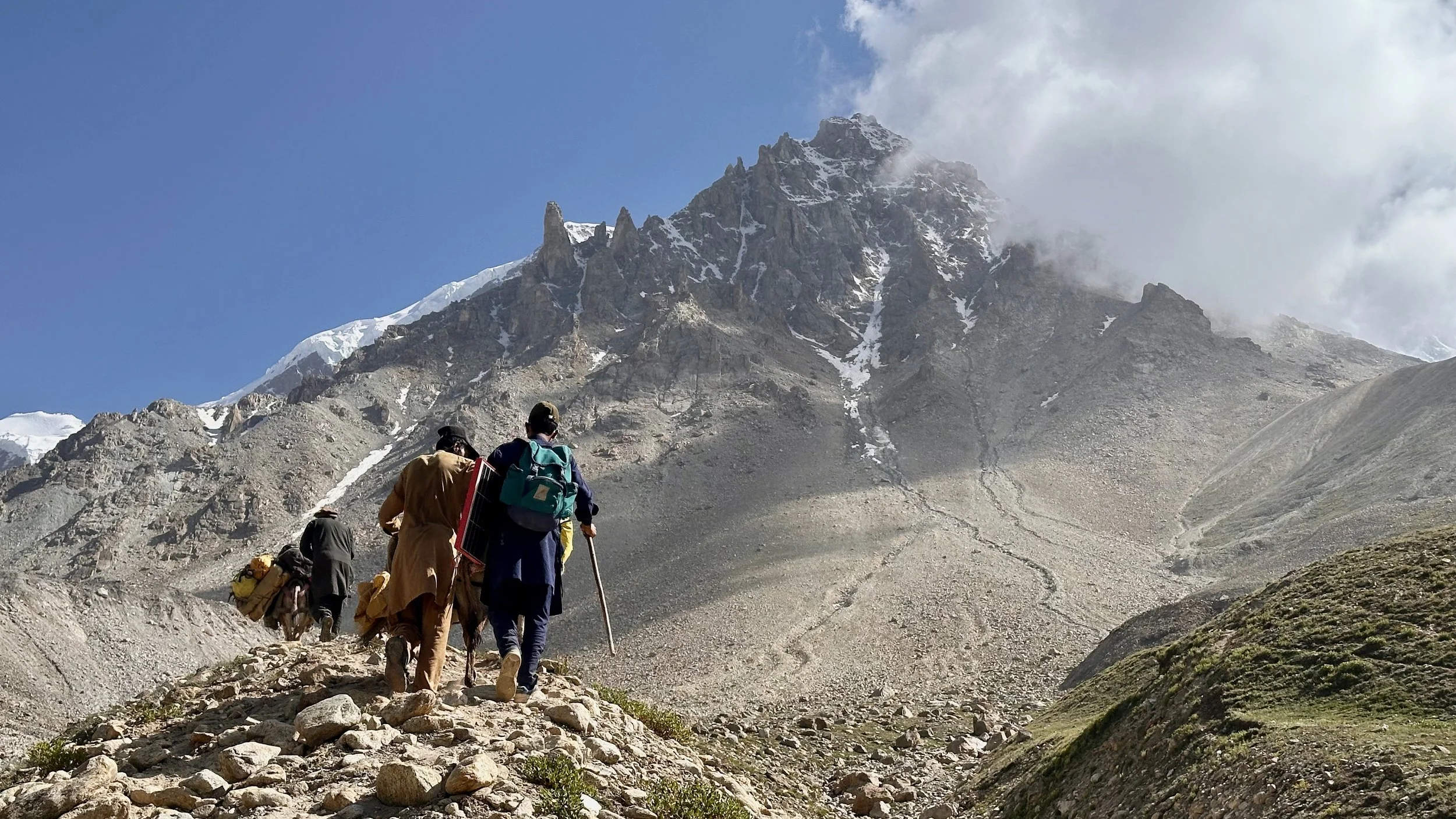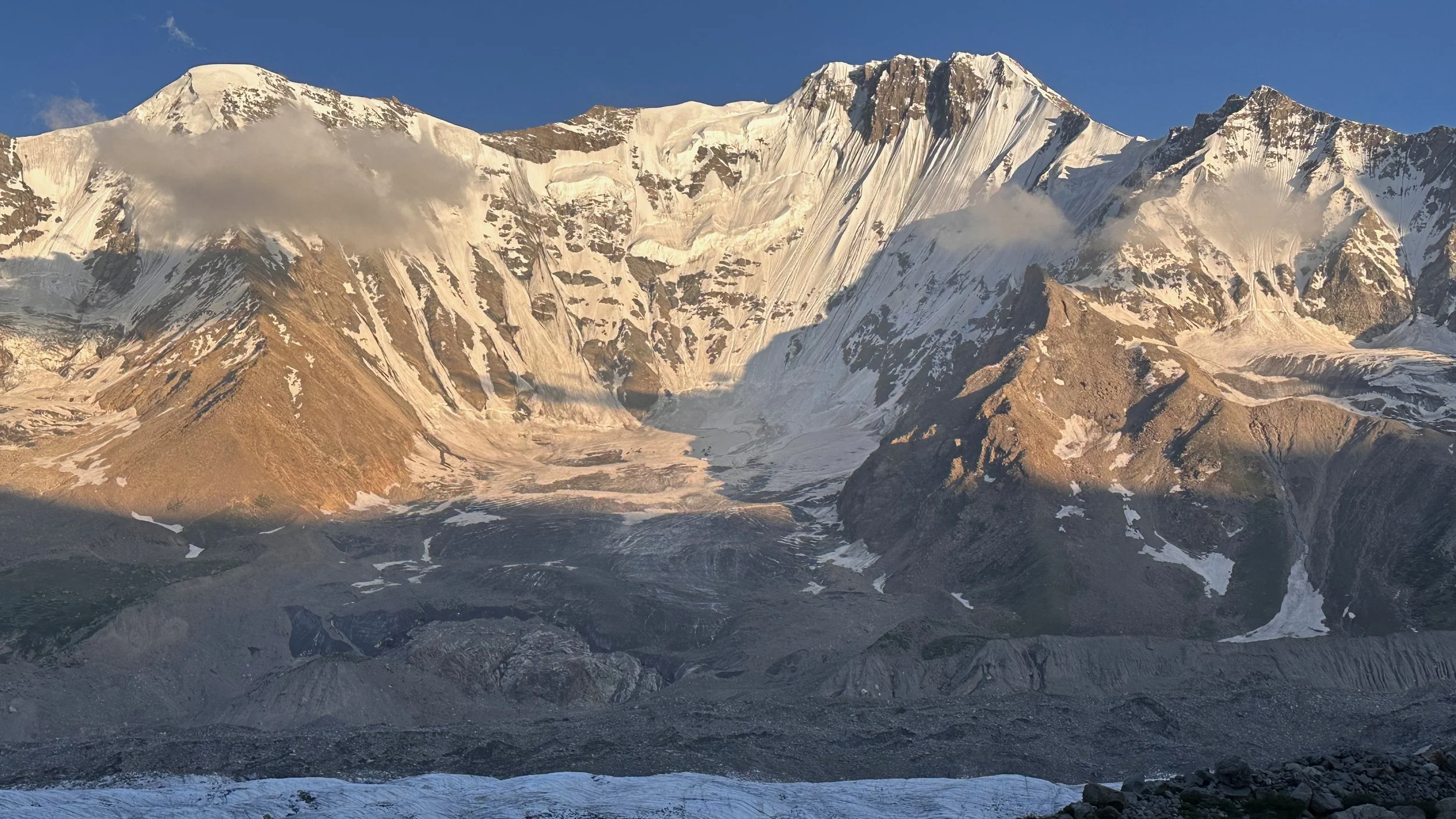 2025 was unusually hot and hiking uphill in the heat was sometimes an intense experience: “The region endured a severe heatwave in June, affecting Northern India and Pakistan. Gilgit-Baltistan recorded extreme temperatures, with Chilas district hitting 48.5°C on July 5, breaking a 28-year record. June’s dry conditions prompted heat warnings in Delhi, Punjab, Rajasthan, Uttar Pradesh, and Haryana. Hospitals in Pakistan’s Punjab province reported an influx of heatstroke cases.” What caused problems lower down, worked in our favour.