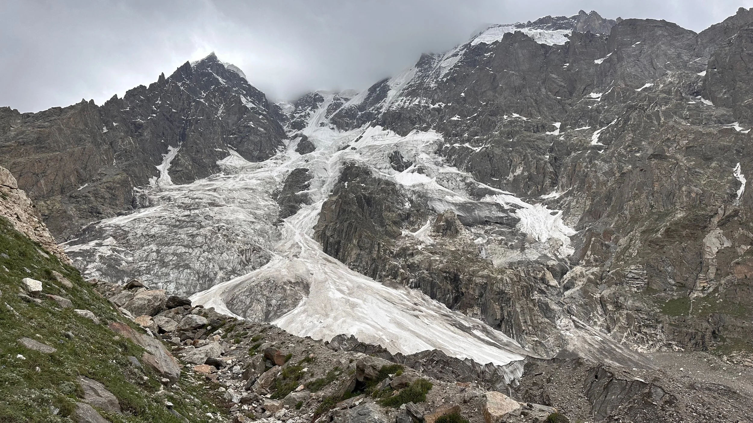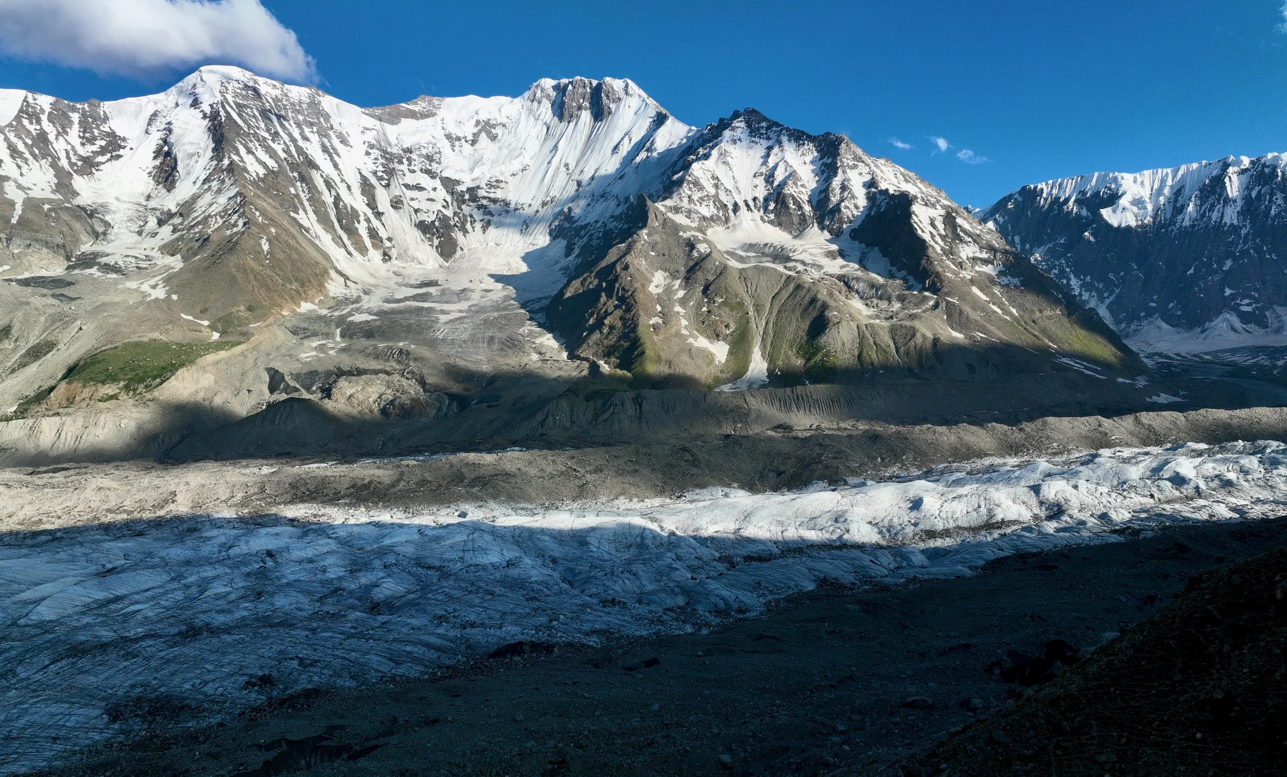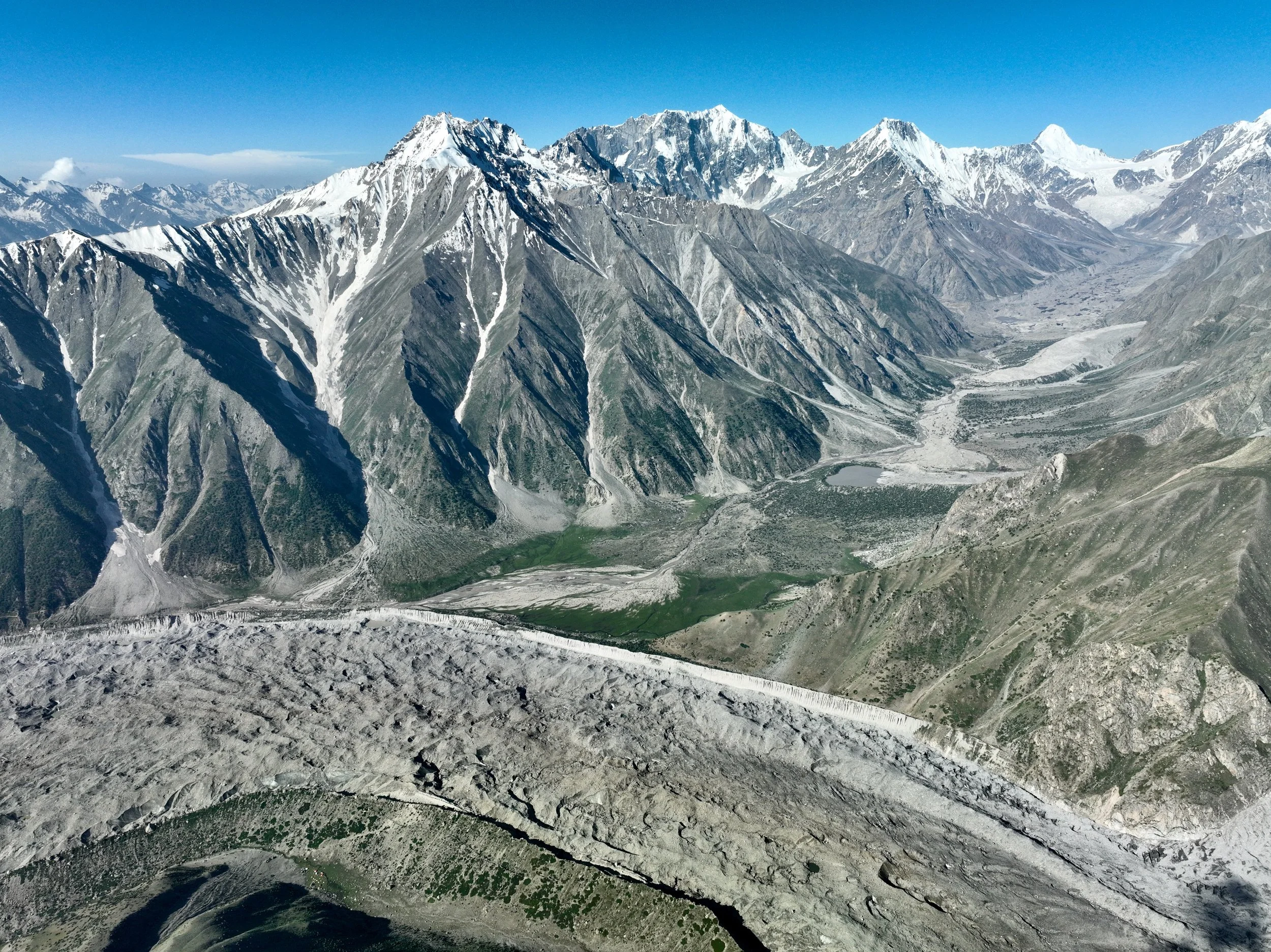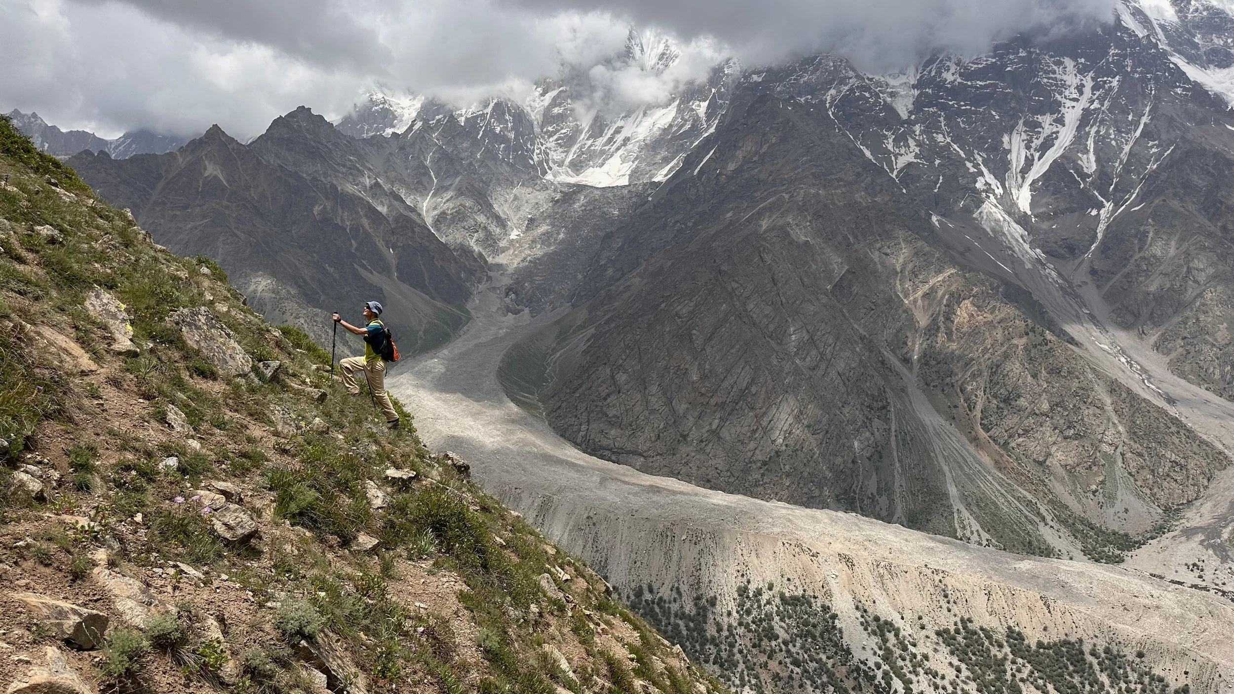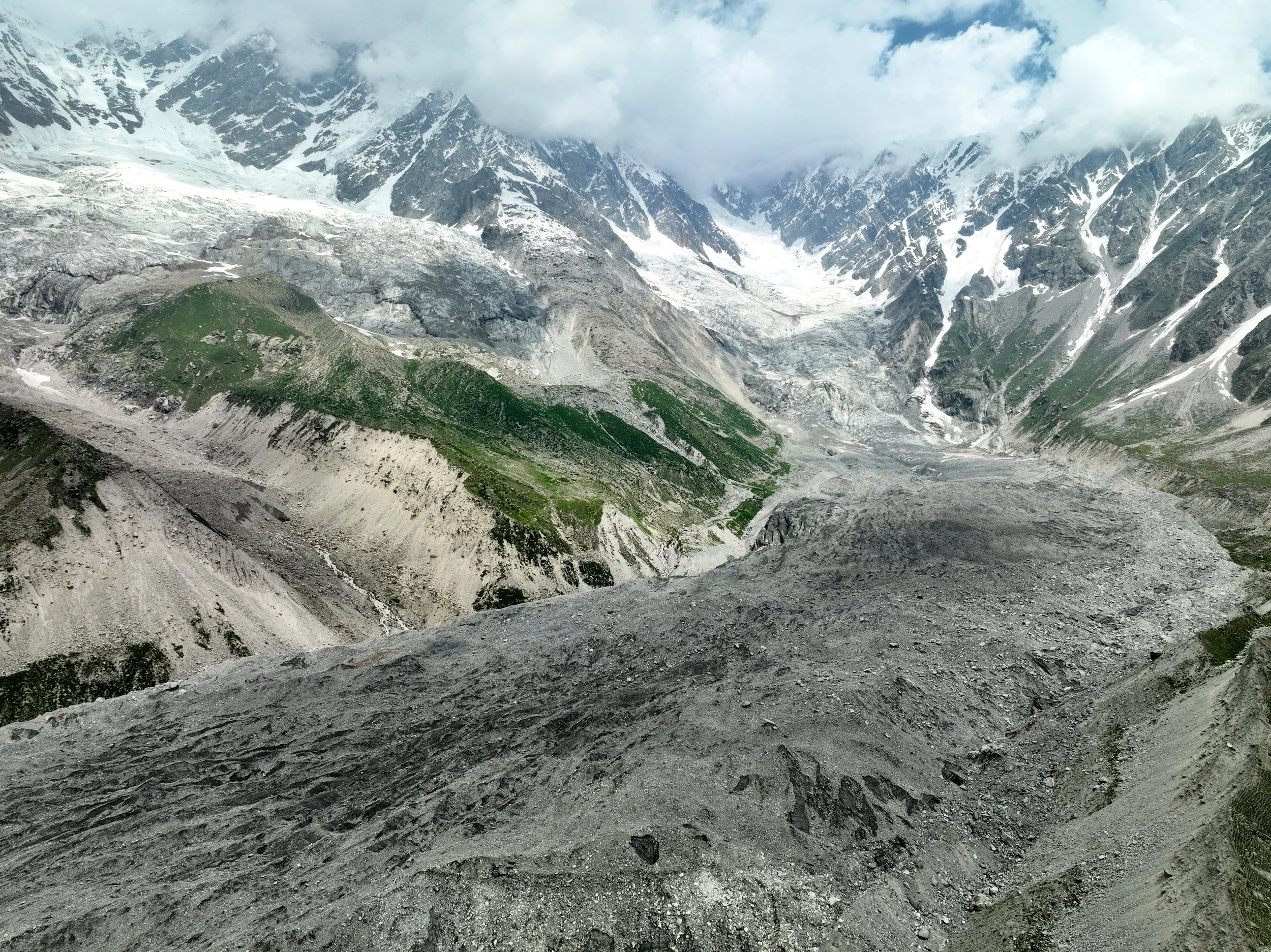 2025 was unusually hot and hiking uphill in the heat was sometimes an intense experience: “The region endured a severe heatwave in June, affecting Northern India and Pakistan. Gilgit-Baltistan recorded extreme temperatures, with Chilas district hitting 48.5°C on July 5, breaking a 28-year record. June’s dry conditions prompted heat warnings in Delhi, Punjab, Rajasthan, Uttar Pradesh, and Haryana. Hospitals in Pakistan’s Punjab province reported an influx of heatstroke cases.” What caused problems lower down, worked in our favour.