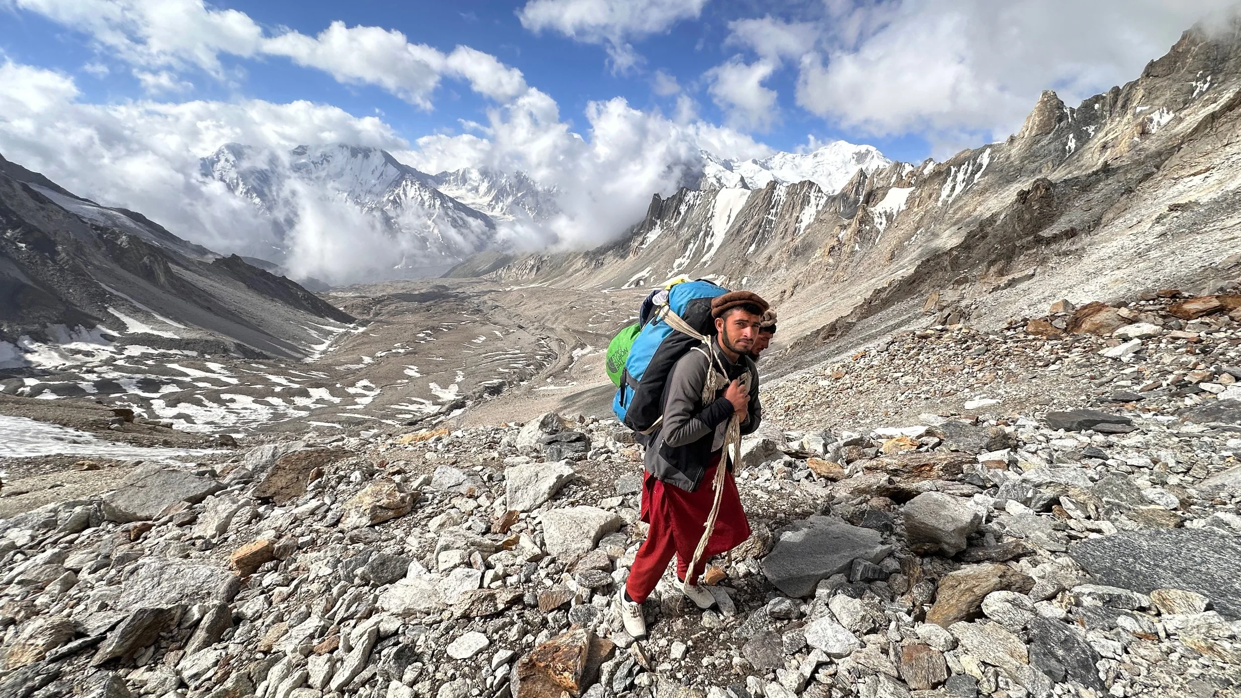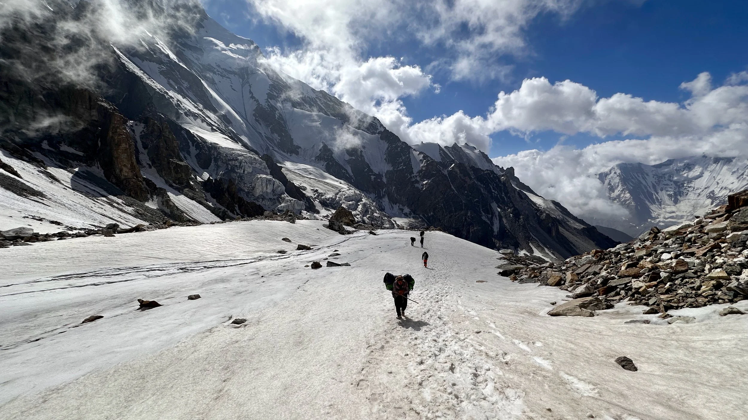 Moving up to the Mazeno Pass high camp at 4,800m.