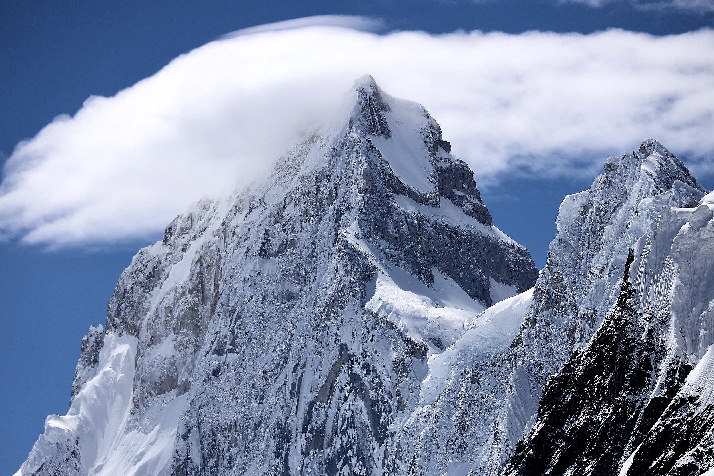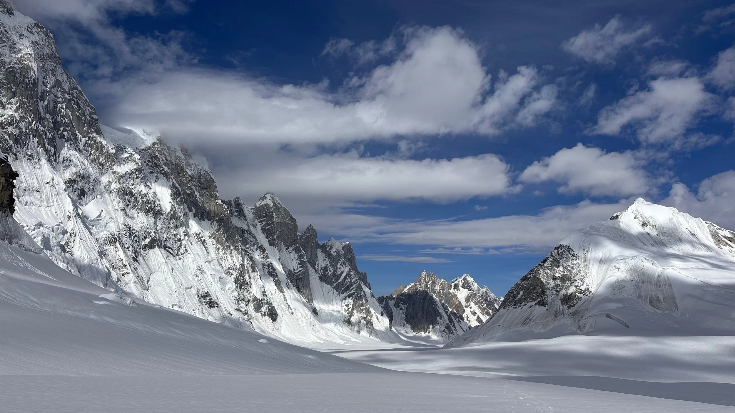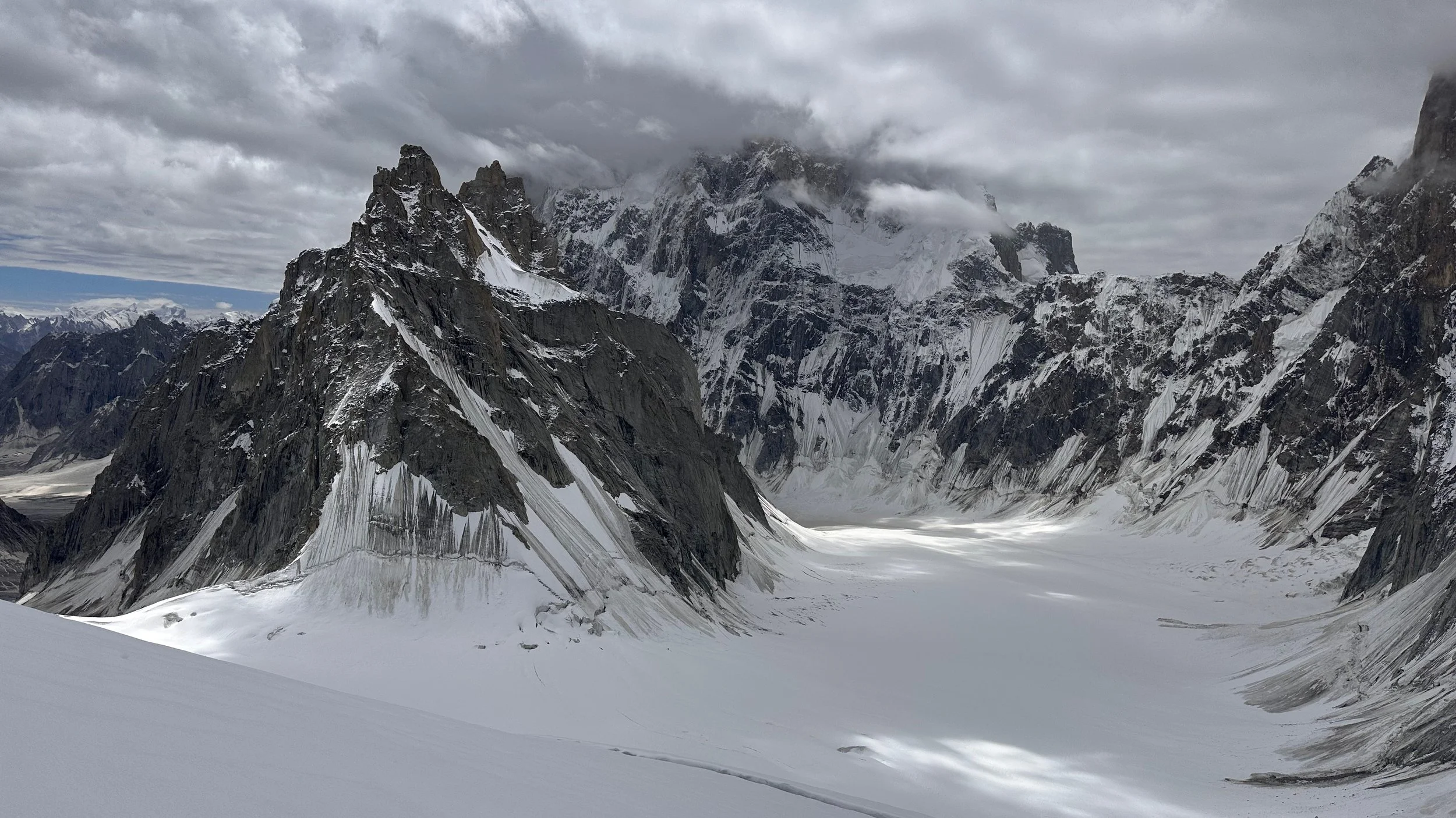 An overview of the Sim Gang Glacier and the Ogre. Even Broad Peak is visible on the horizon.