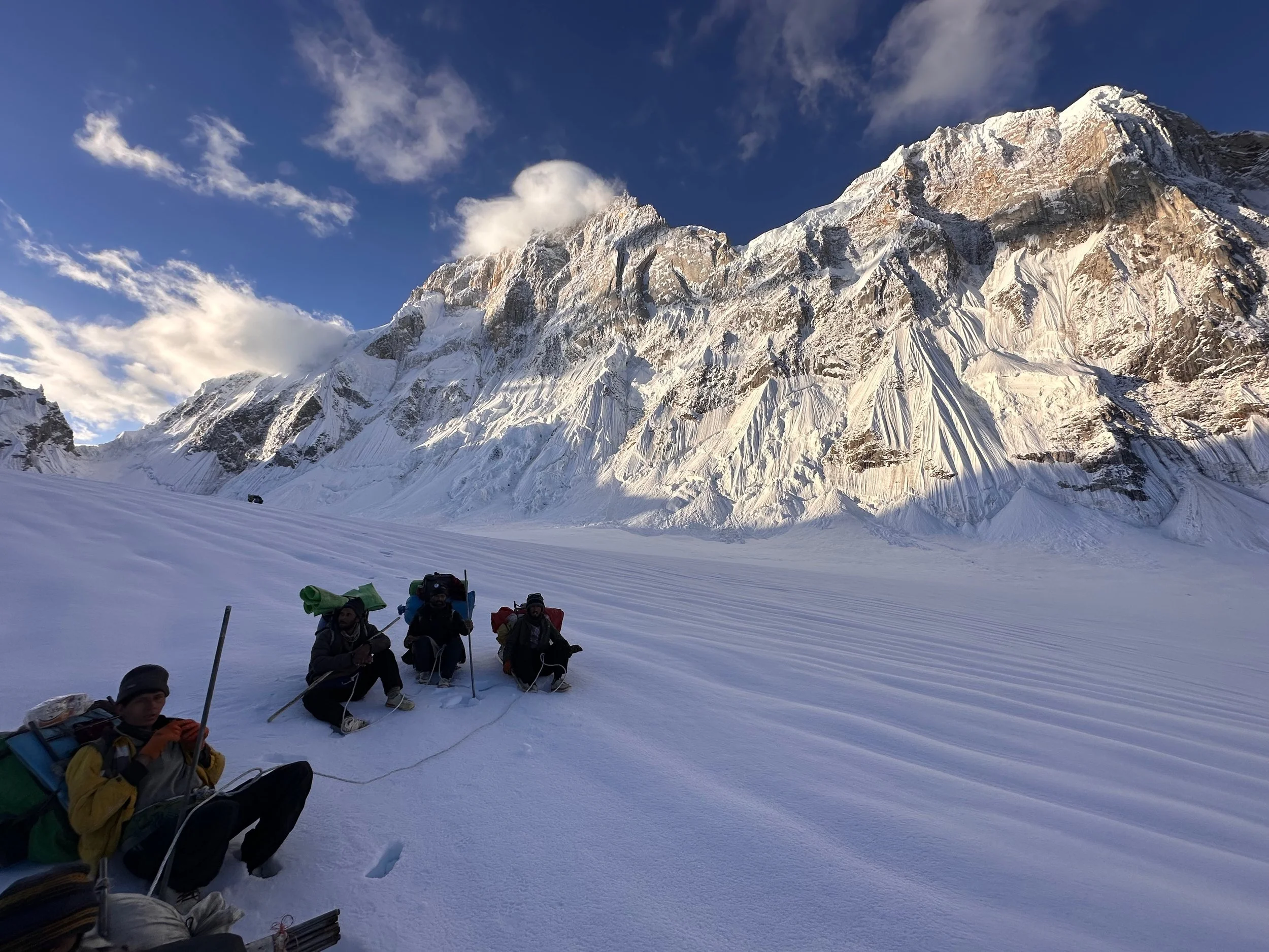 We are now on the Sim Gang Glacier. As the day wore on, the snow became progressively softer. It was difficult and dangerous to walk. We decided to set up camp and continue on during the night.