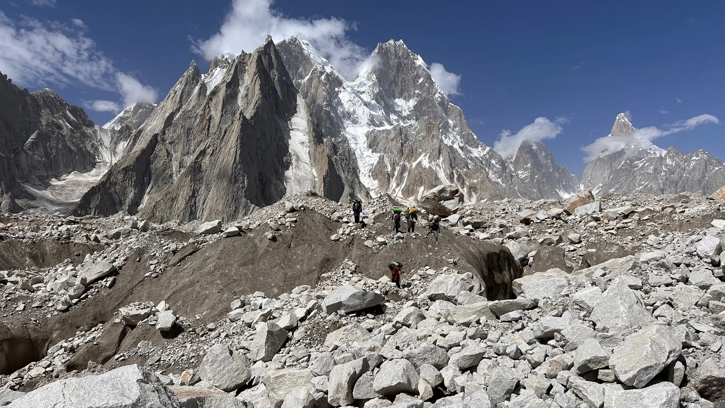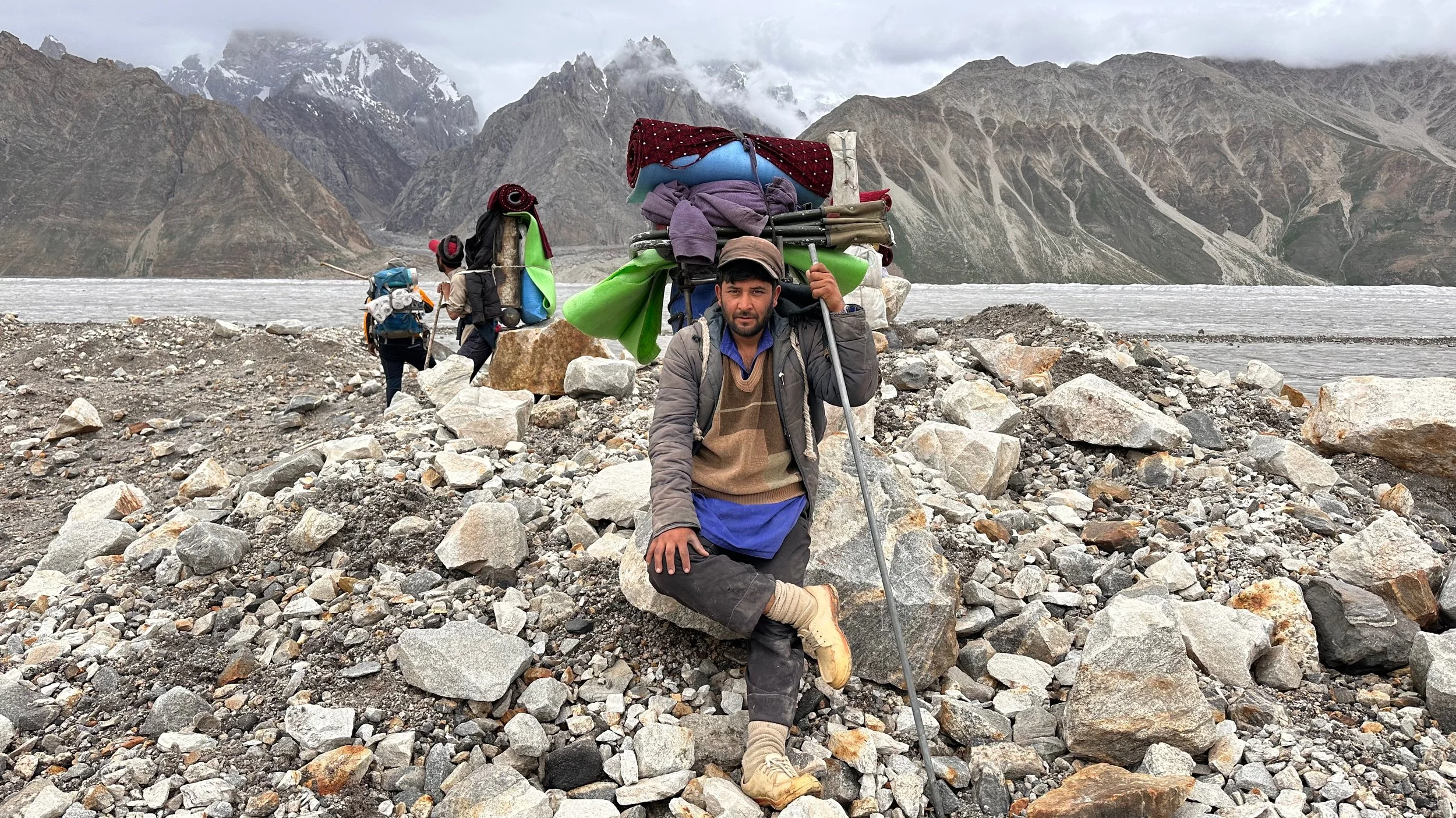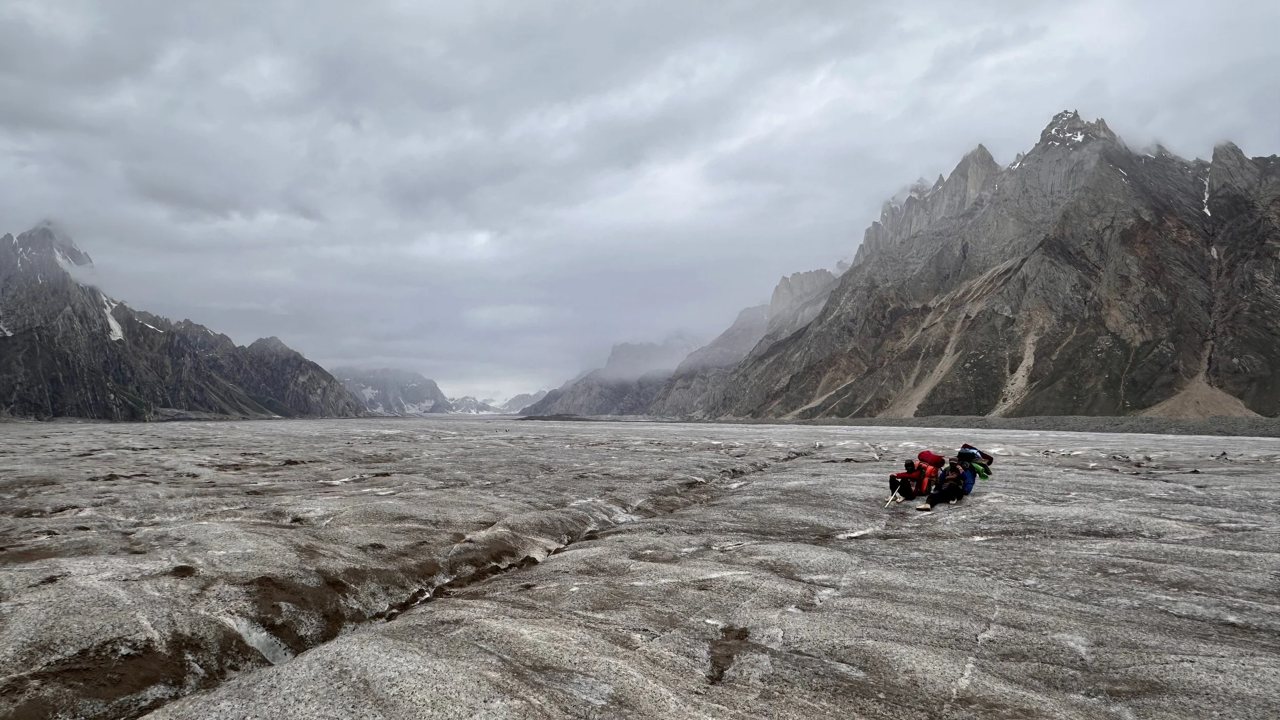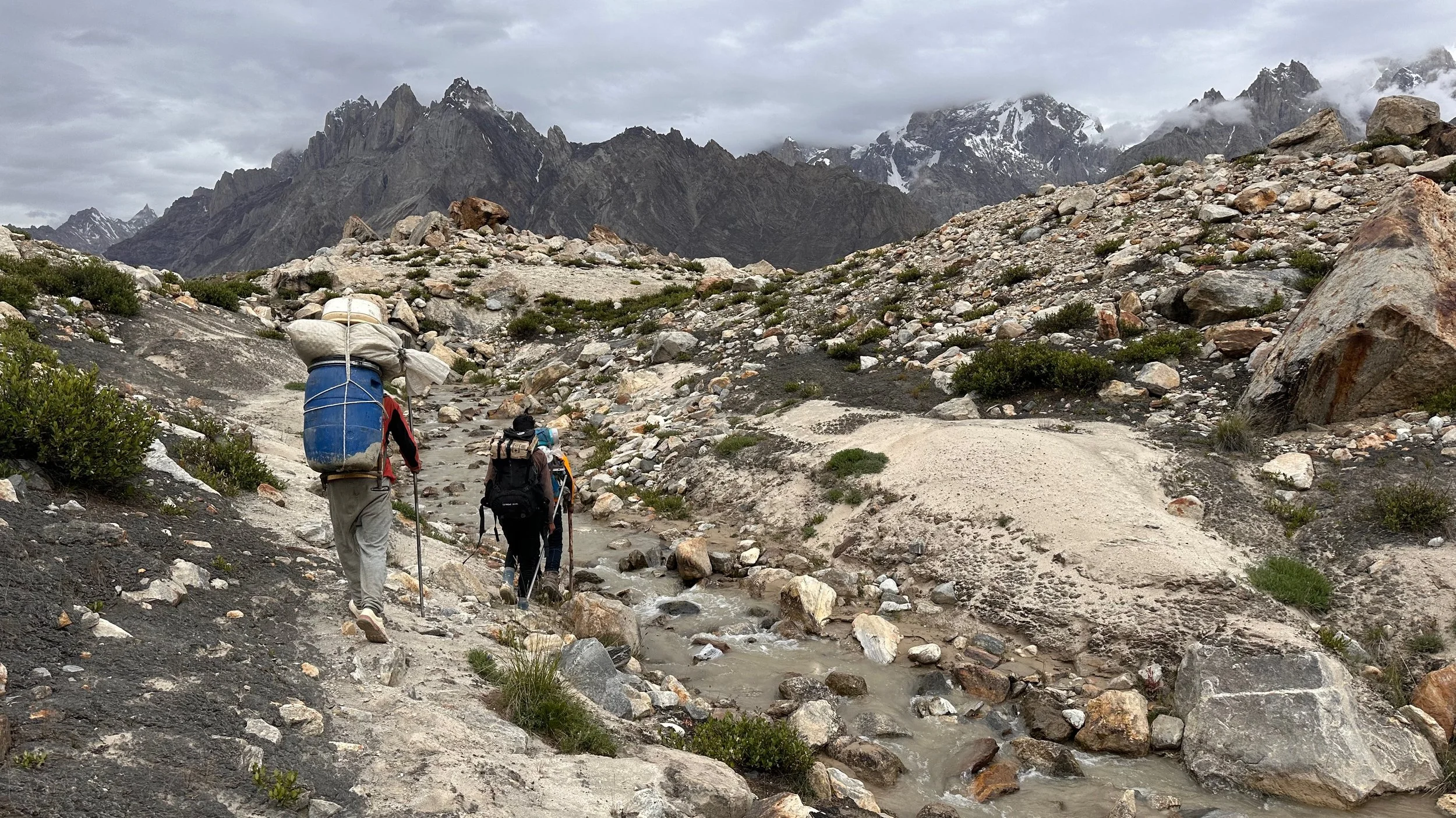 Leaving our cozy and beautiful camp by the Biafo Glacier.