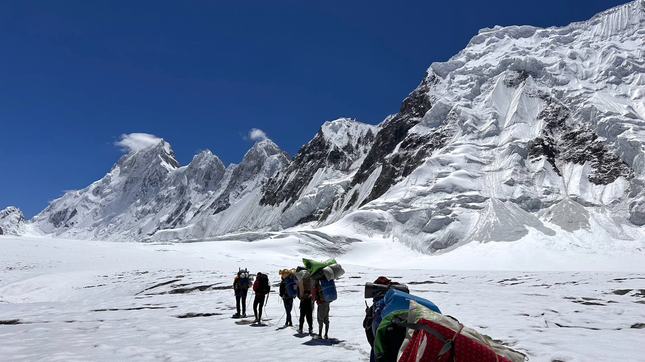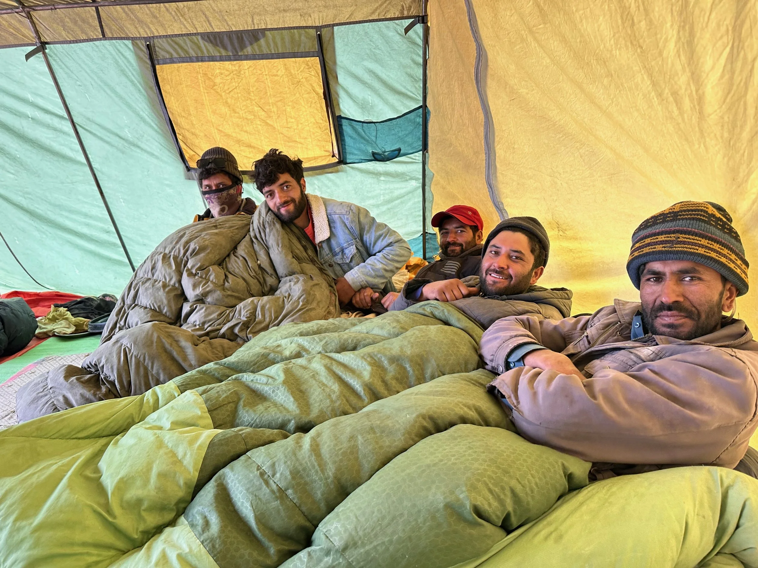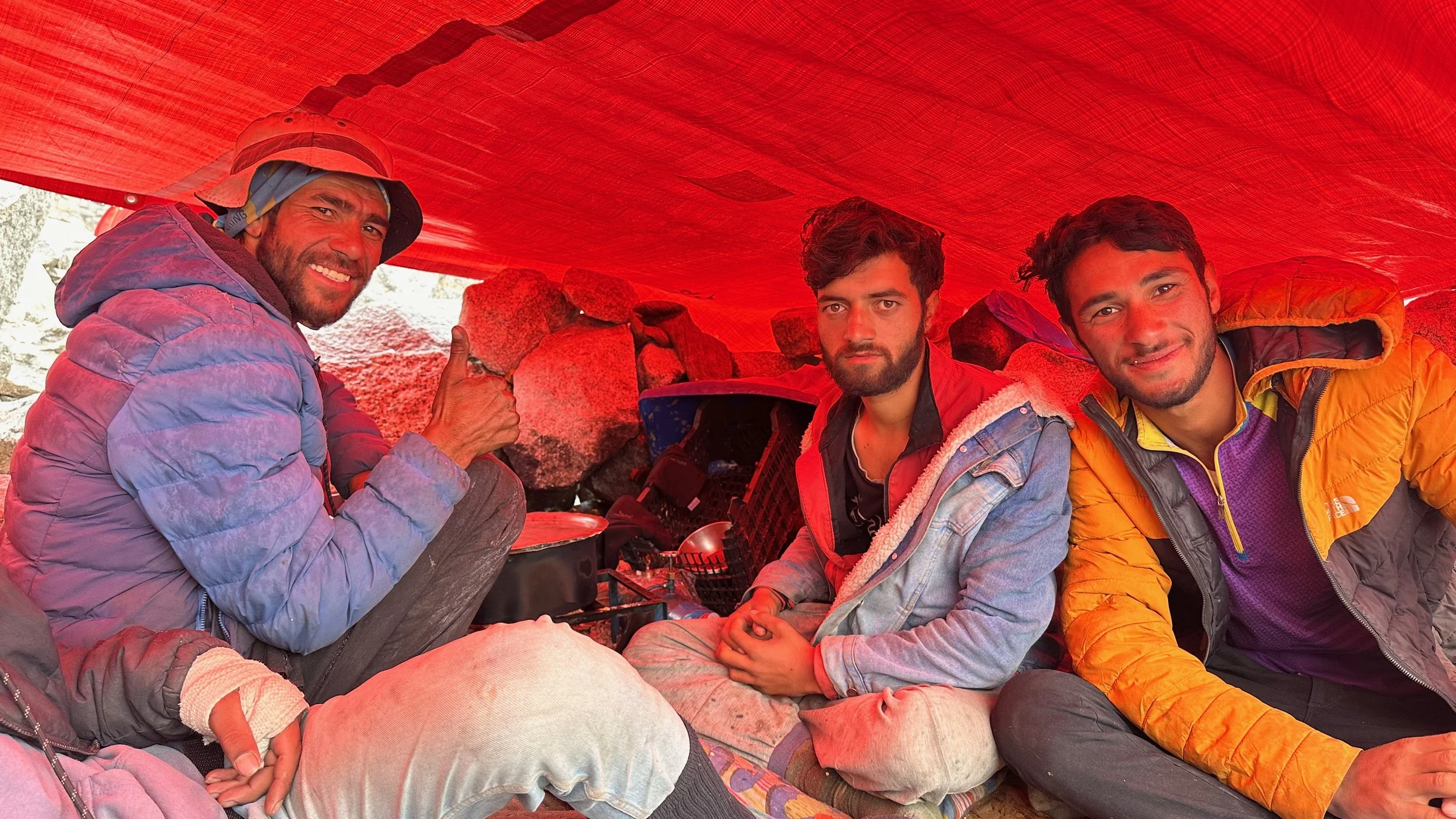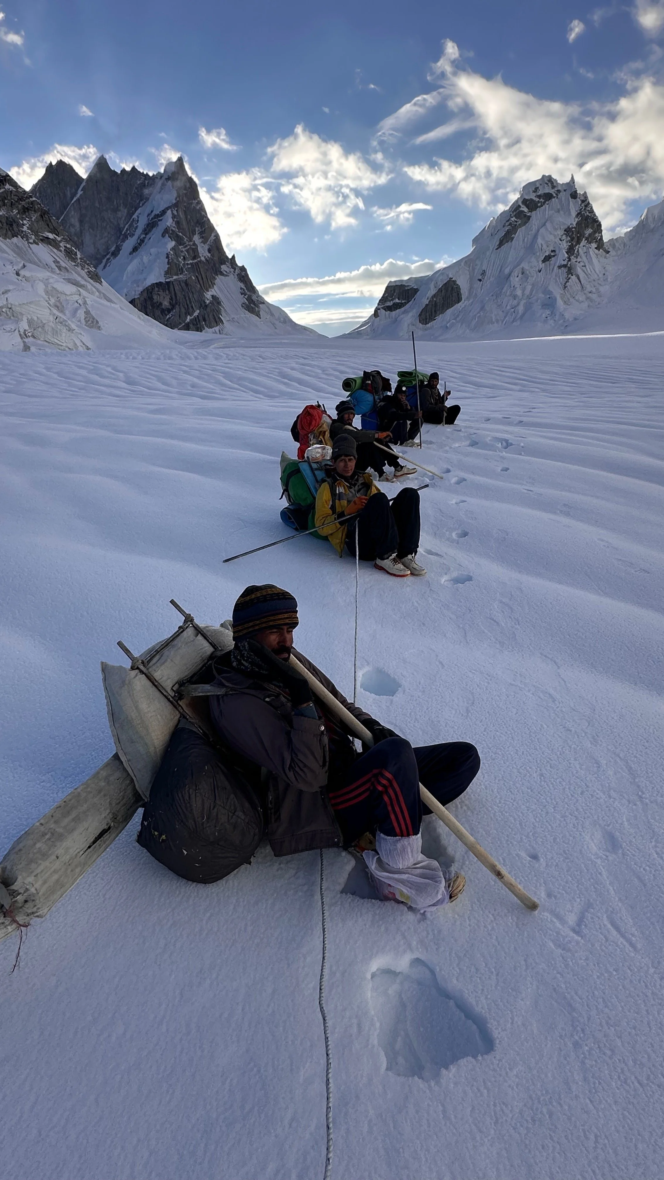 Leaving our cozy and beautiful camp by the Biafo Glacier.