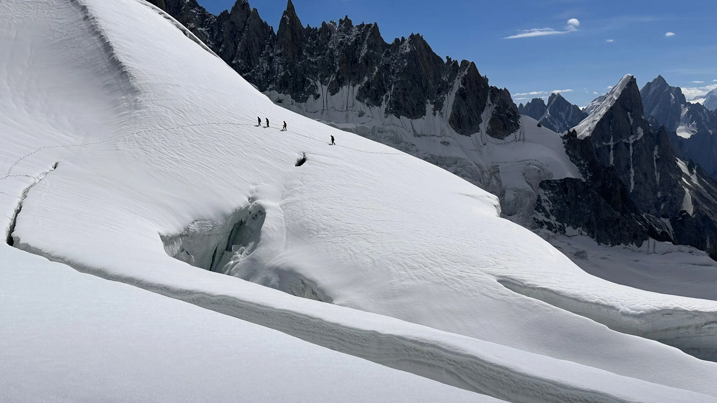 Spectacular scenery but hard walking in the soft snow and the heat!