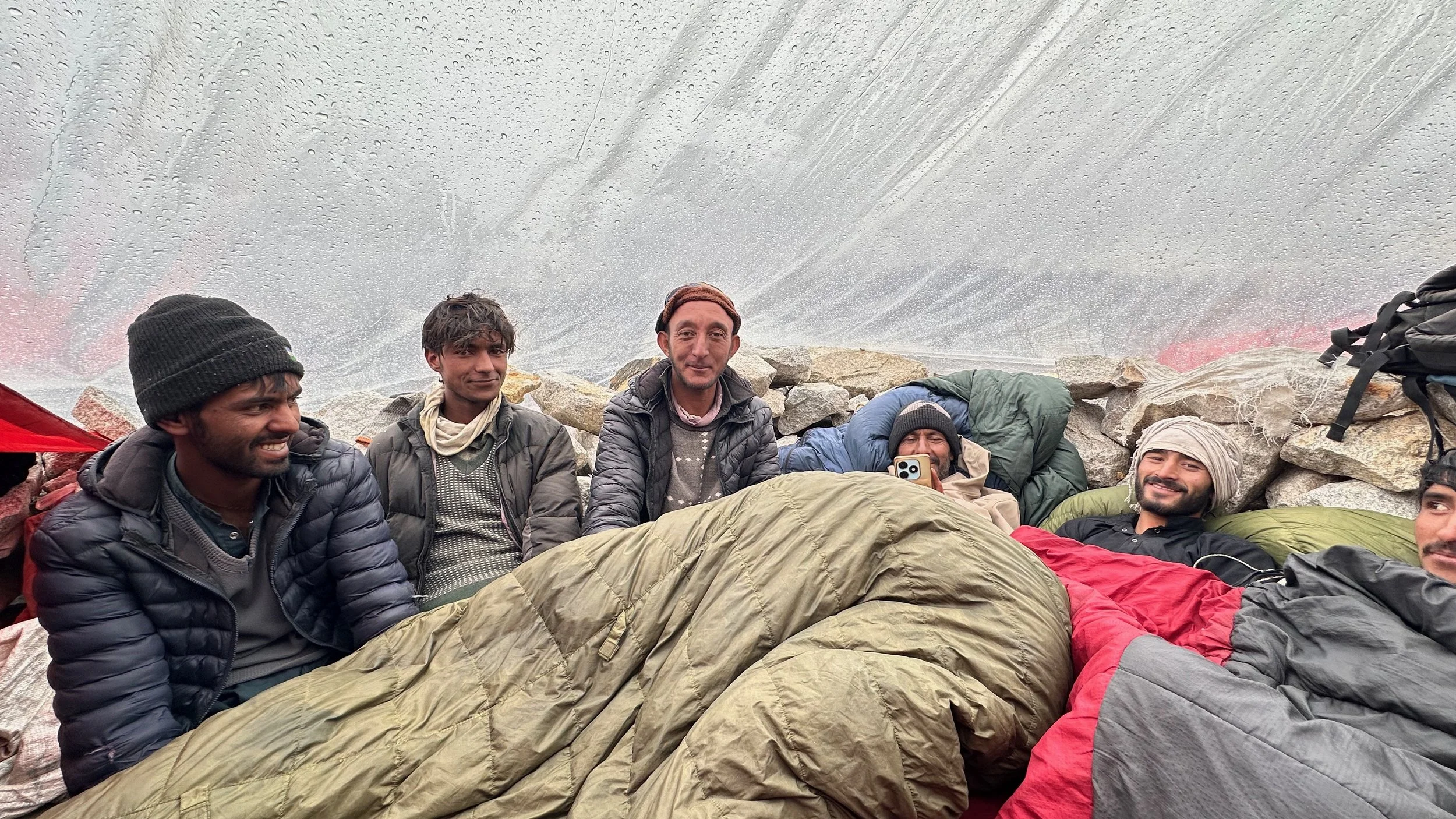 Drying off after a 15 hour day of the Sim La Pass. We were wet, tired but happy to be on the Choktoi Glacier.